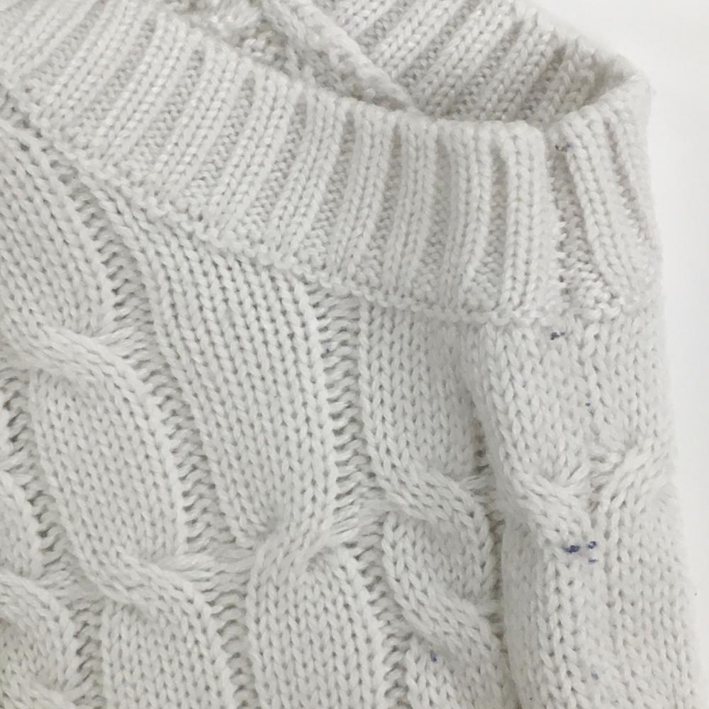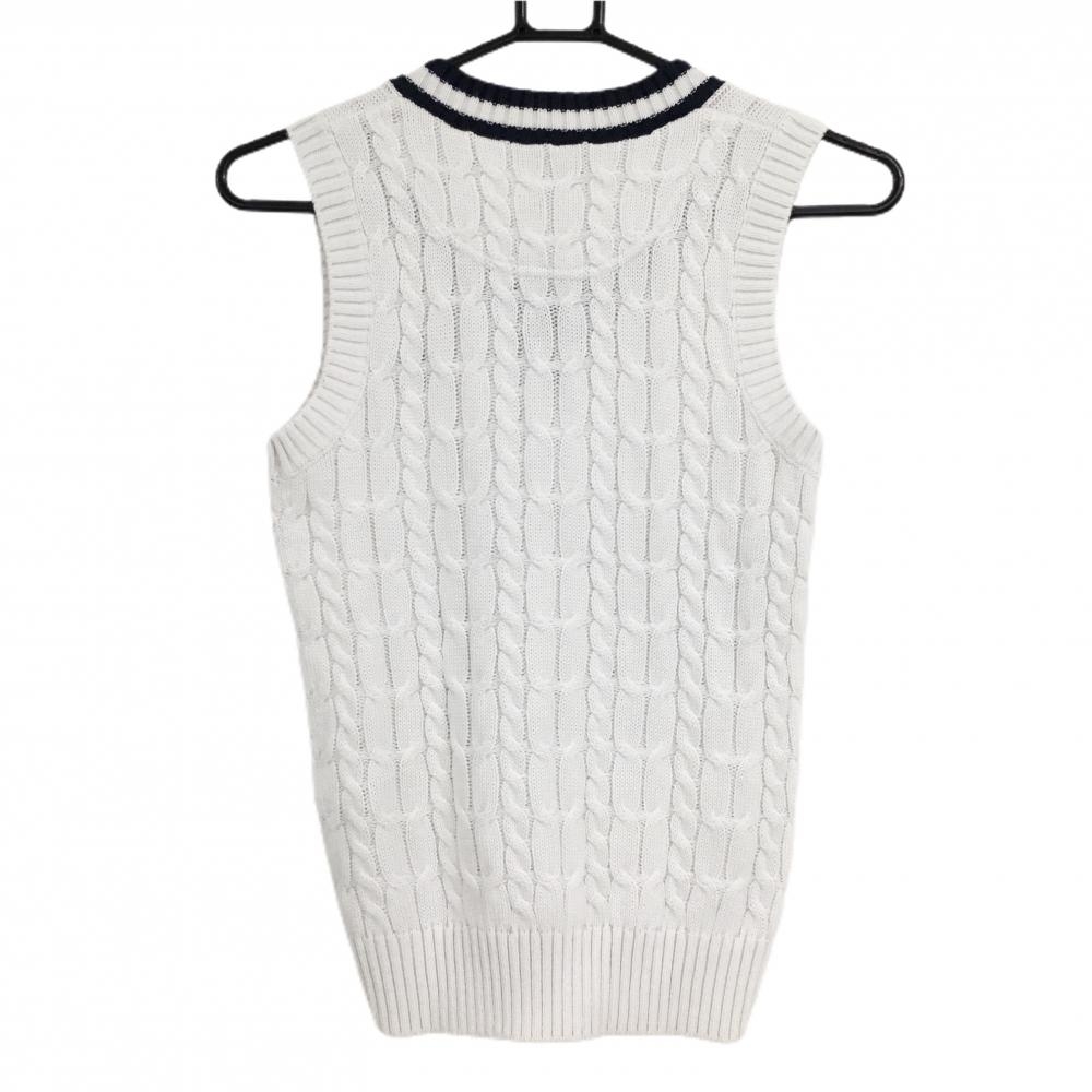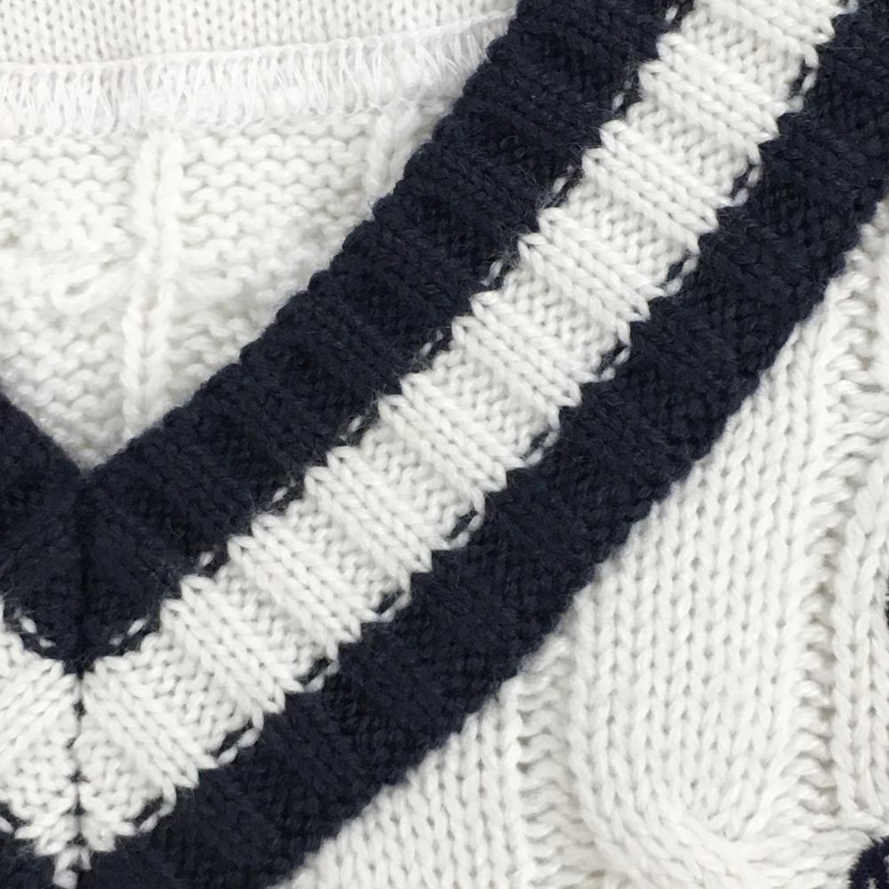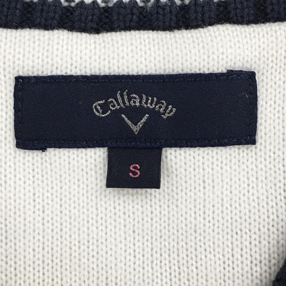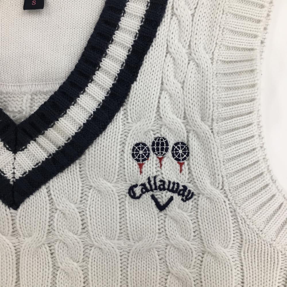 【美品】キャロウェイ ニットベスト 白×ネイビー ケーブル編み ウール混 Vネック レディース S ゴルフウェア Callaway