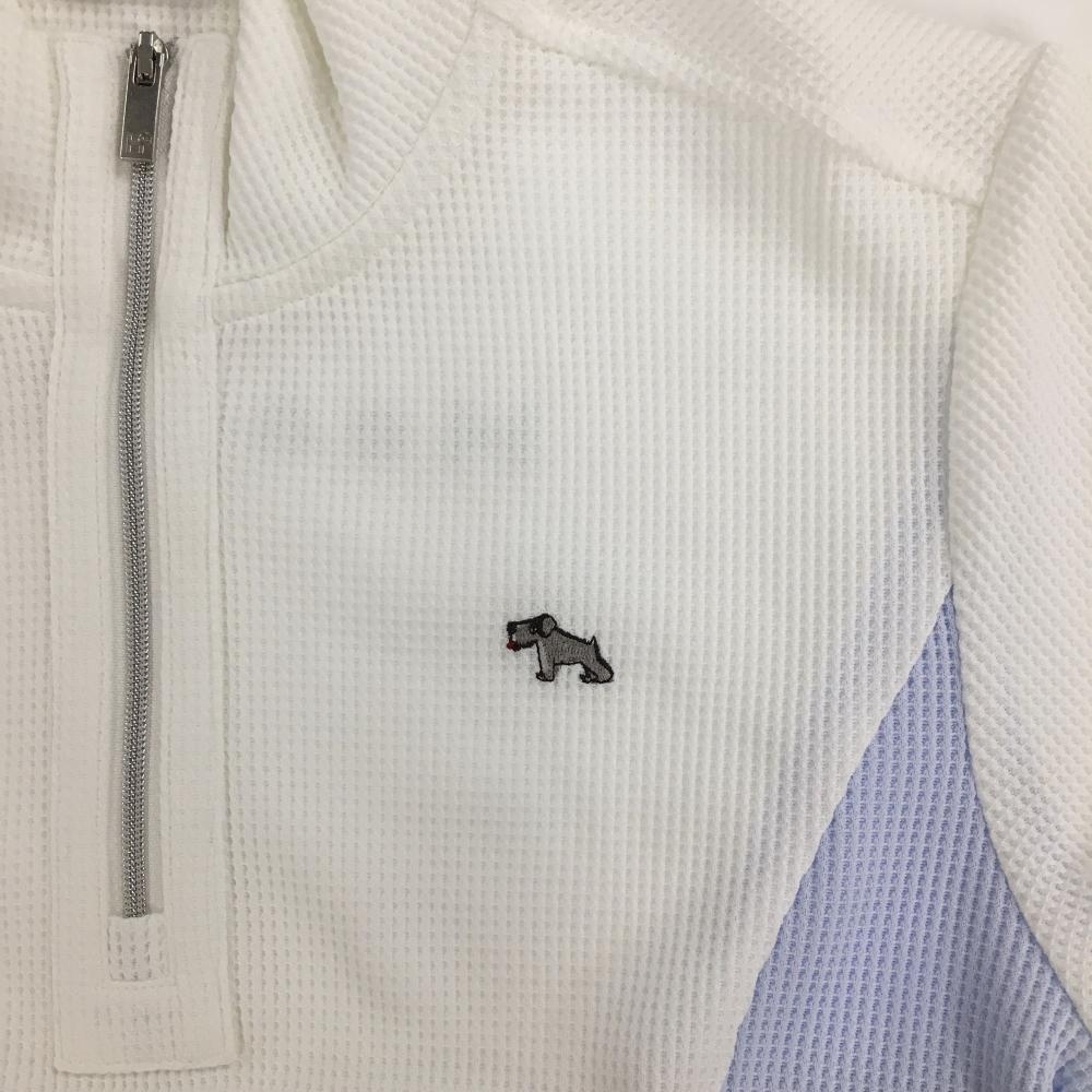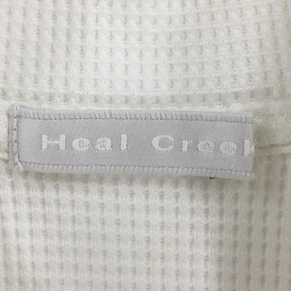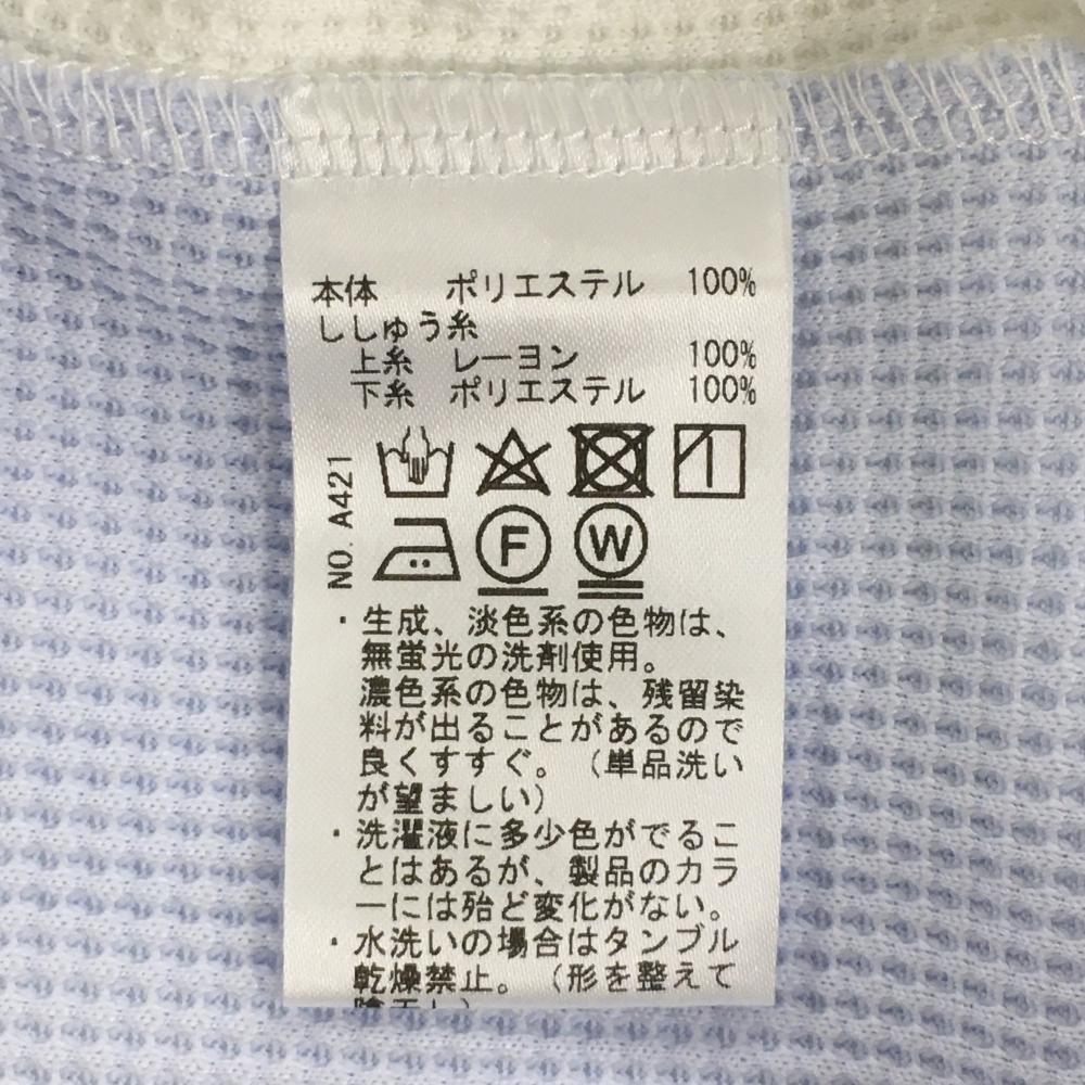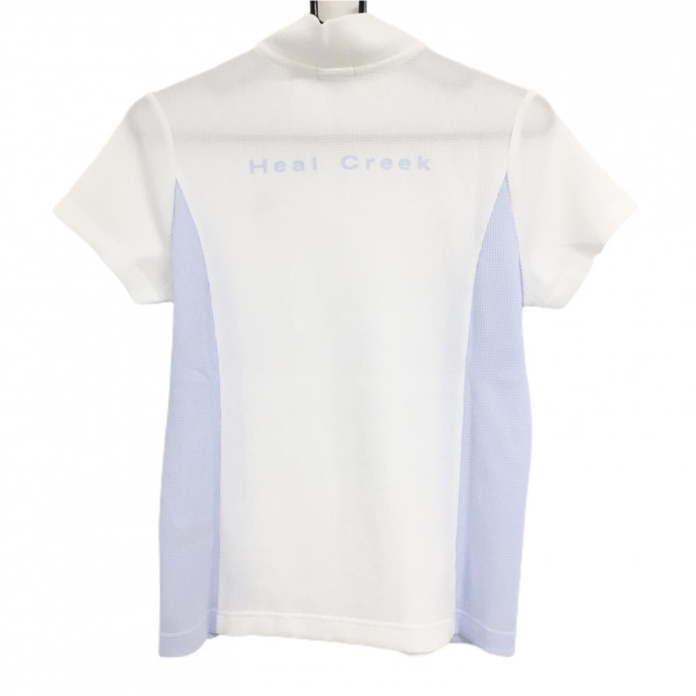 【超美品】ヒールクリーク 半袖ハイネックシャツ 白×ライトブルー ワッフル調 ハーフジップ レディース 40(M) ゴルフウェア Heal Creek