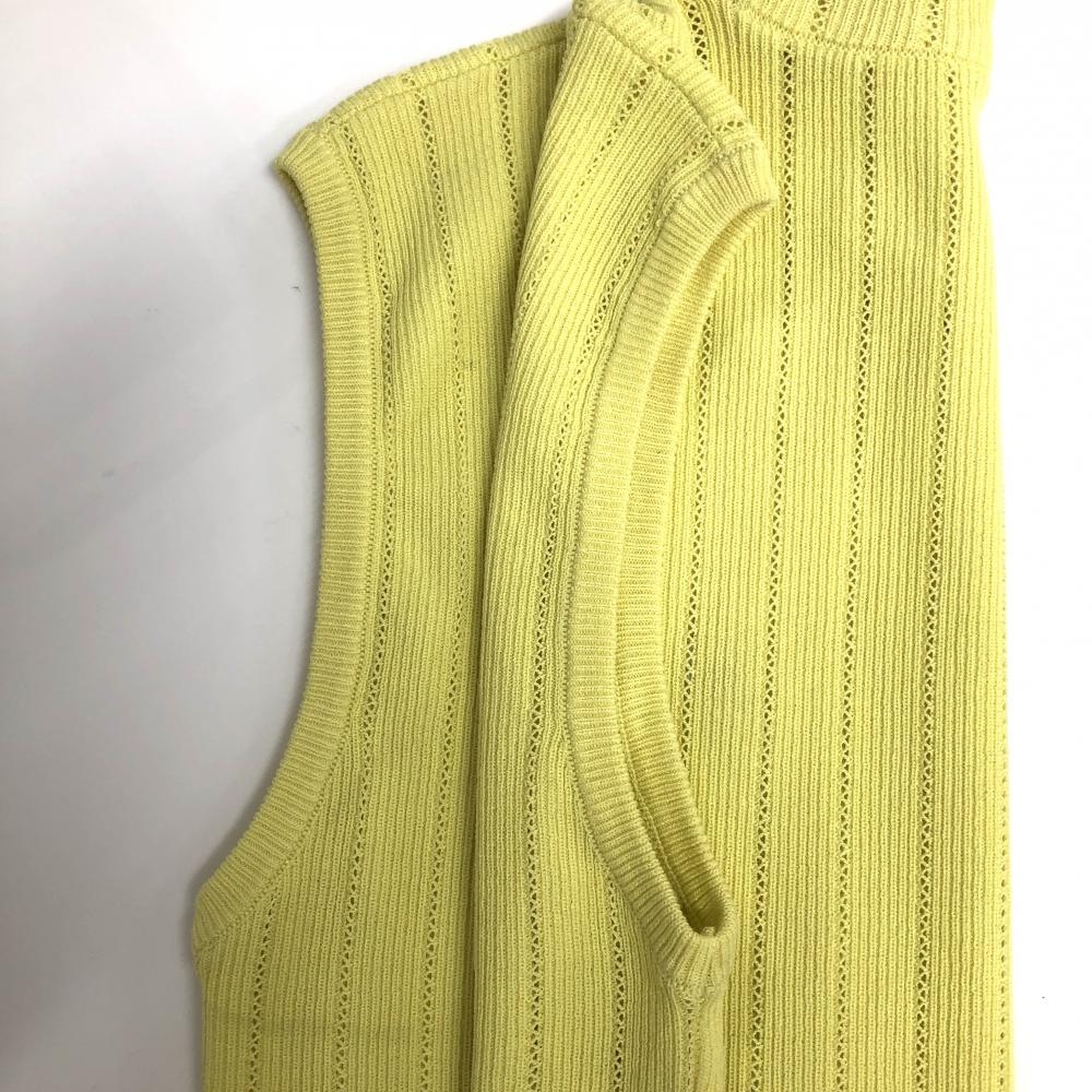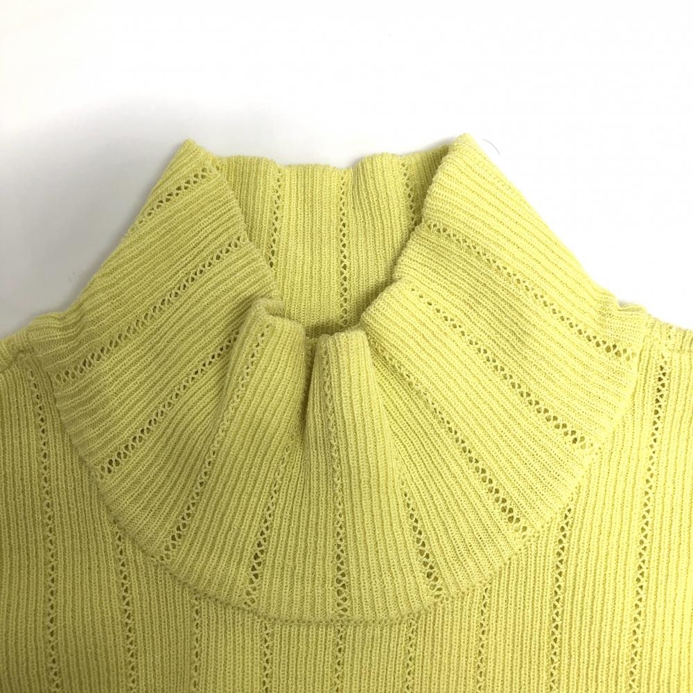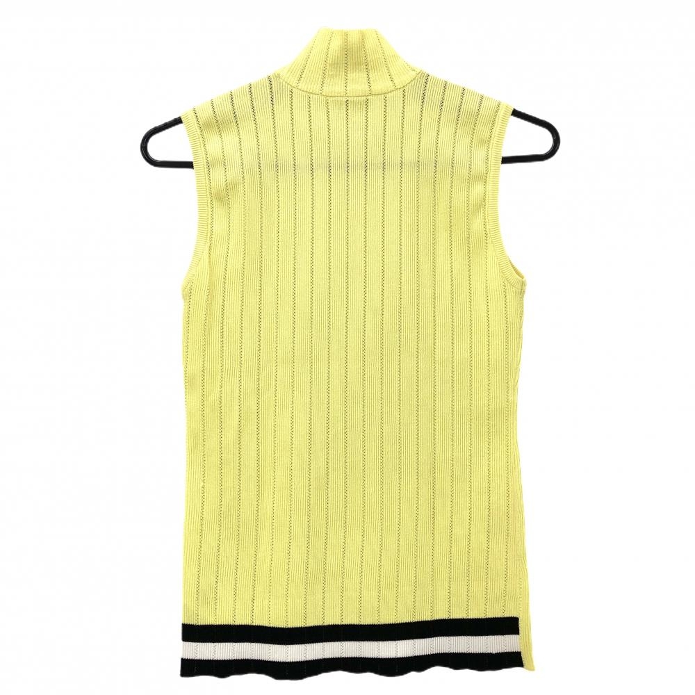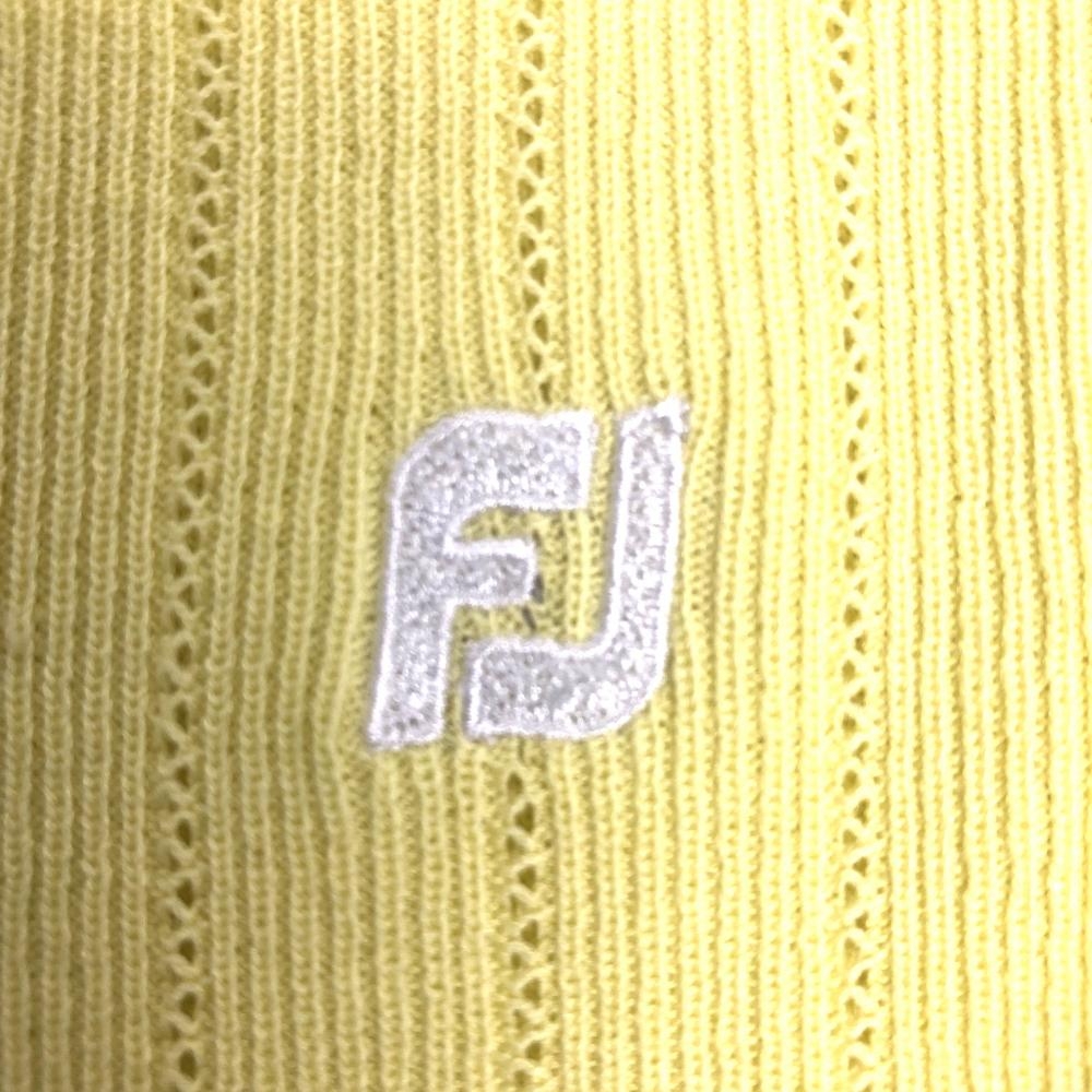 【美品】フットジョイ ノースリーブハイネックセーター イエロー ストライプ編み 韓国モデル レディース M ゴルフウェア FootJoy