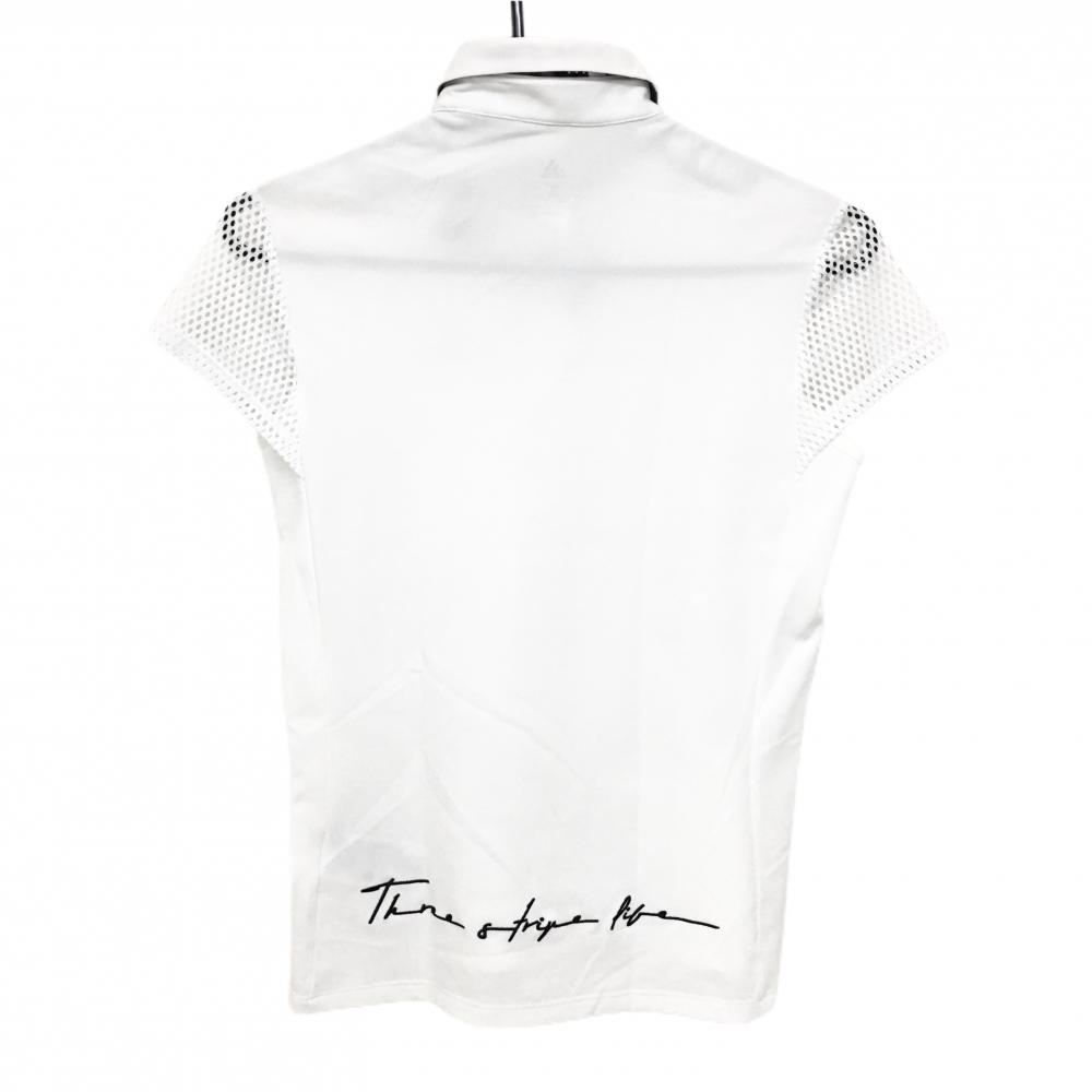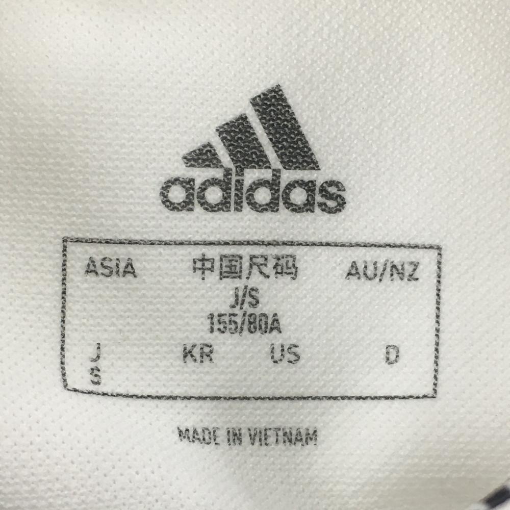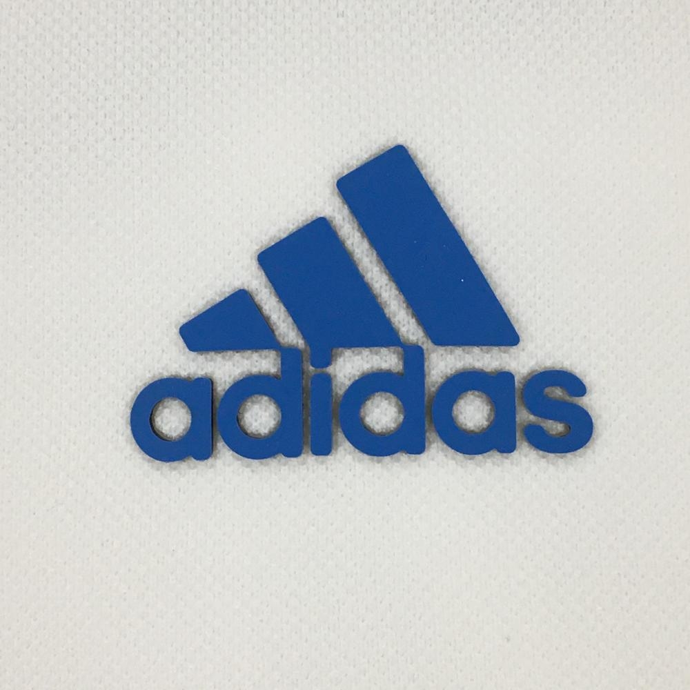 【新品】アディダス 半袖ポロシャツ 白 袖メッシュ ロゴブルー レディース S ゴルフウェア adidas