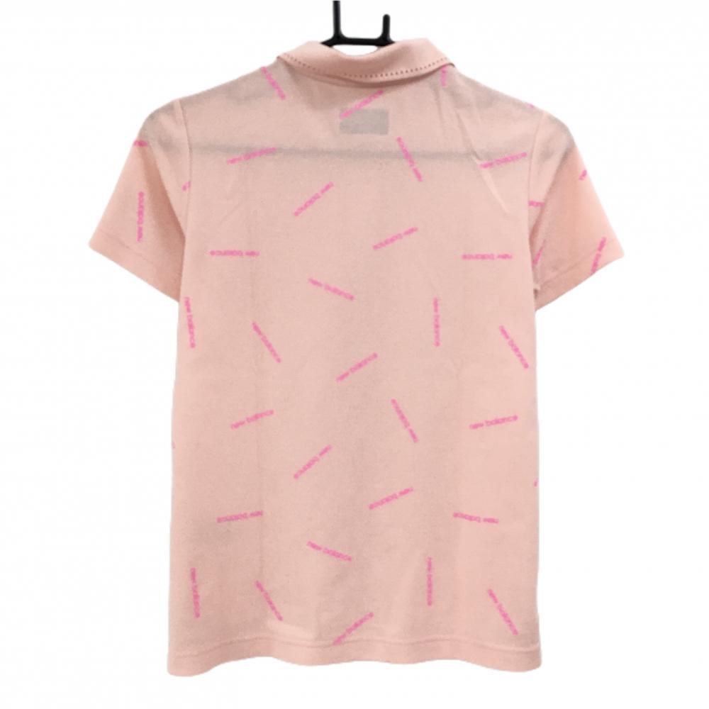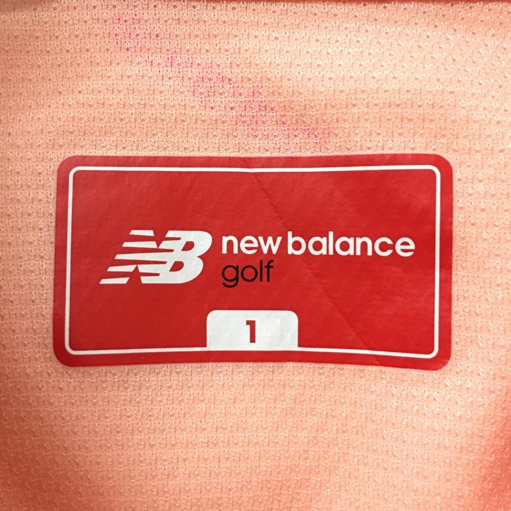 【超美品】ニューバランスゴルフ 半袖ポロシャツ サーモンピンク×蛍光ピンク ロゴ総柄 レディース 1(M) ゴルフウェア New Balance