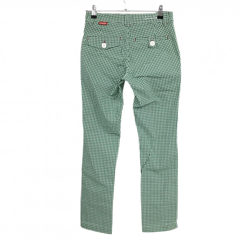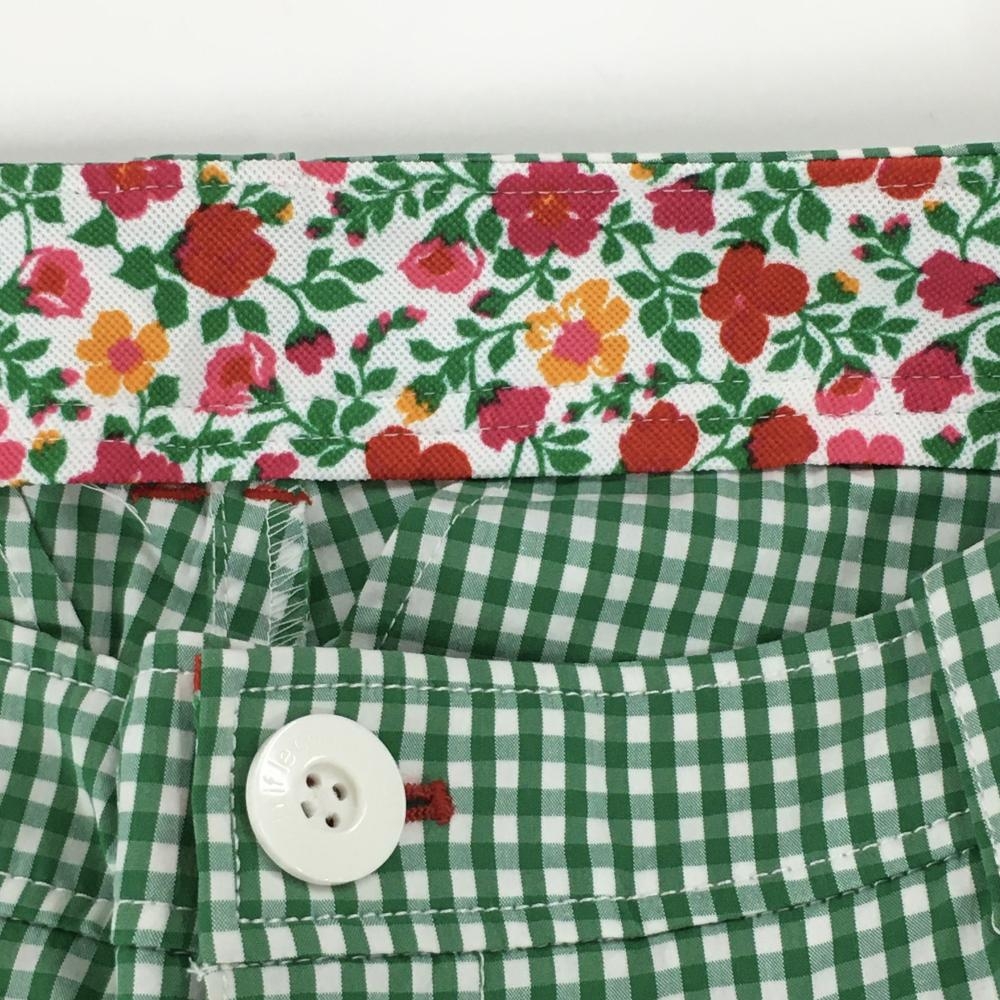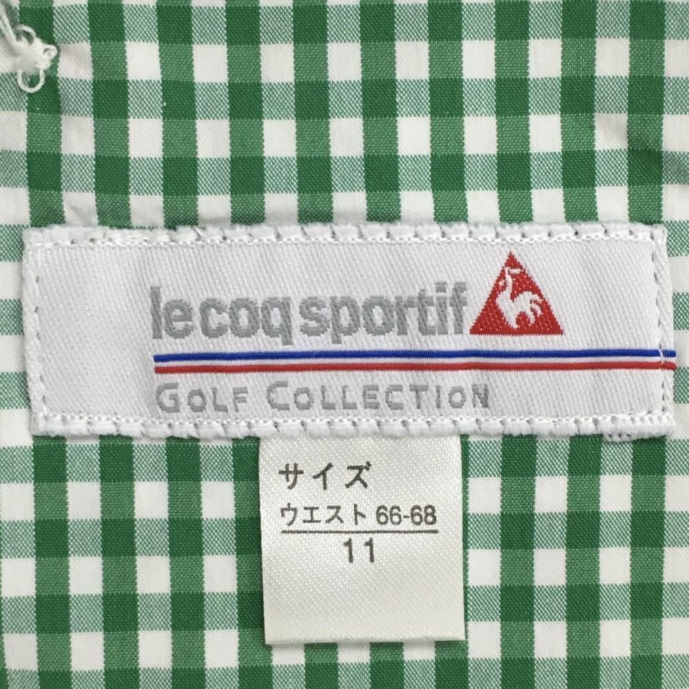 【超美品】ルコックゴルフ パンツ グリーン×白 チェック柄 ウエスト内側花柄 レディース 11 ゴルフウェア le coq sportif