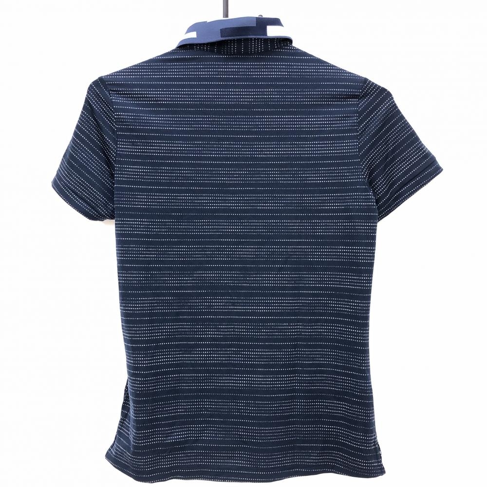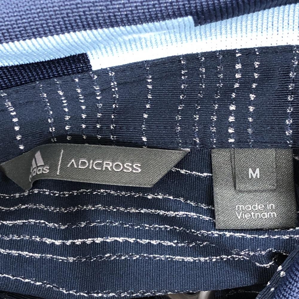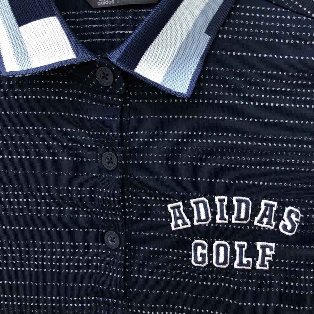 【美品】アディダス 半袖ポロシャツ ネイビー×白 ボーダー調 襟柄 ADICROSS レディース M ゴルフウェア adidas