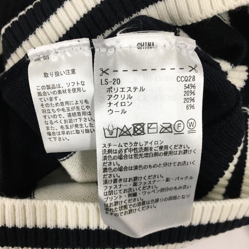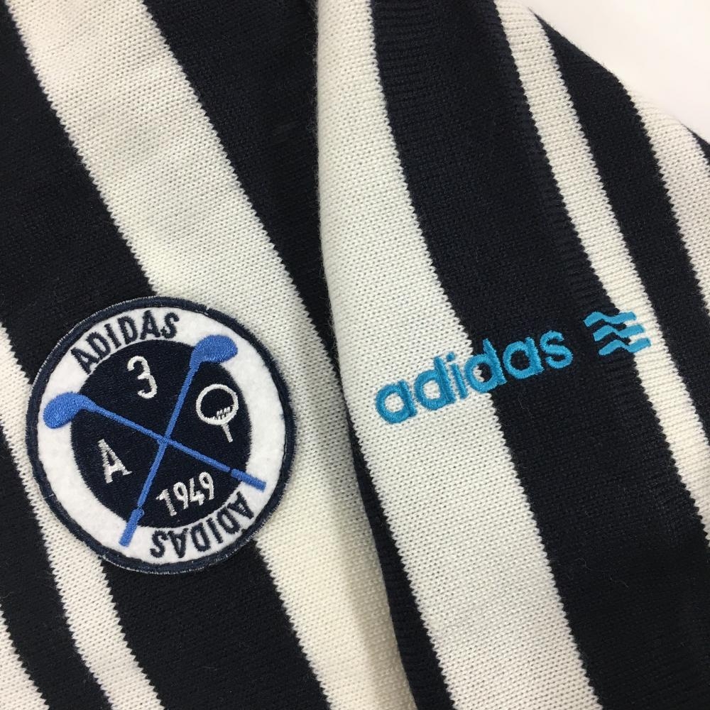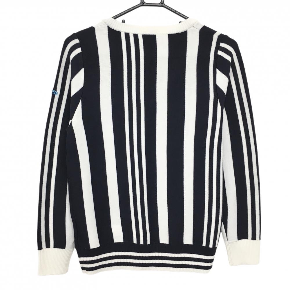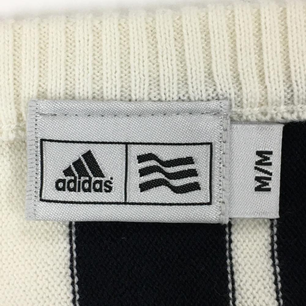 【超美品】アディダス セーター 白×ネイビー ストライプ Vネック ニット レディース M/M ゴルフウェア adidas