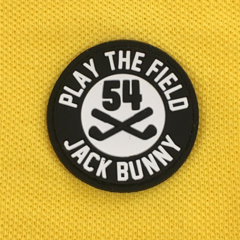 【超美品】ジャックバニー 半袖ポロシャツ イエロー シリコンワッペン メンズ 4(M) ゴルフウェア Jack Bunny