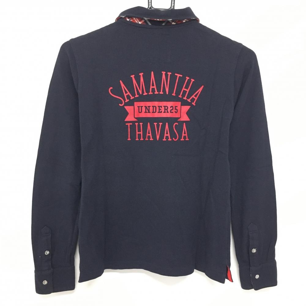 【美品】サマンサタバサUNDER25 長袖ポロシャツ ネイビー 襟裏チェック 綿100% レディース M ゴルフウェア Samantha Thavasa