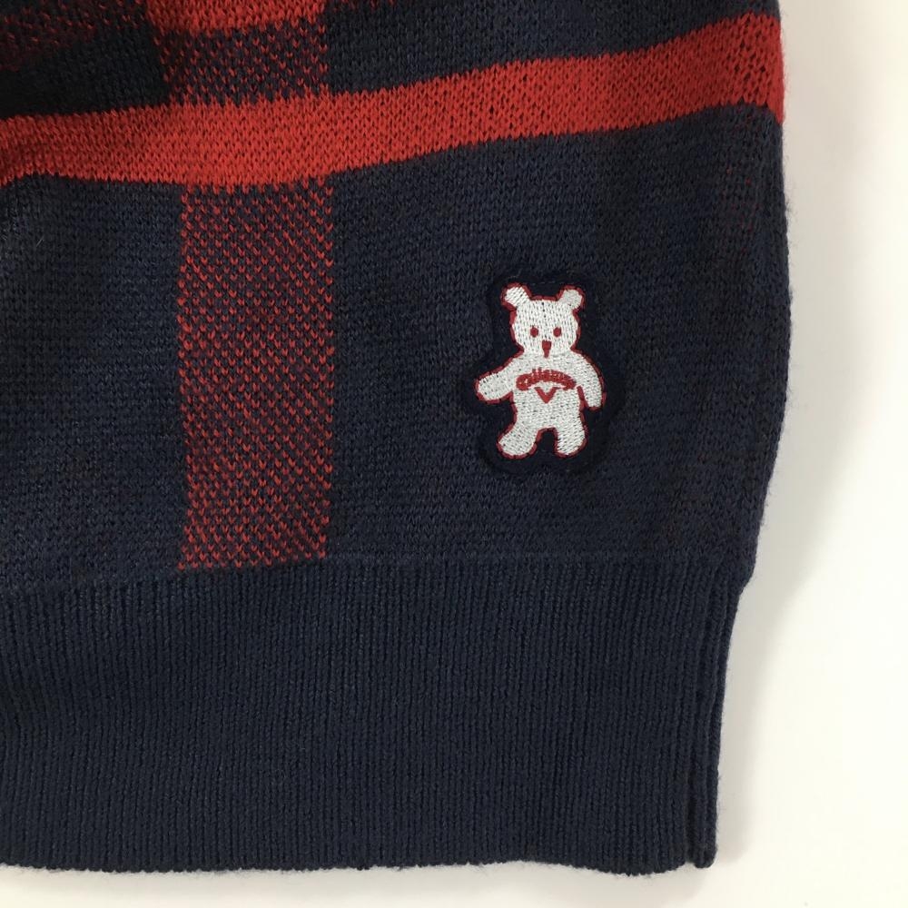 キャロウェイ セーター ネイビー×レッド 格子柄 袖星 ベアワッペン ニット レディース M ゴルフウェア Callaway