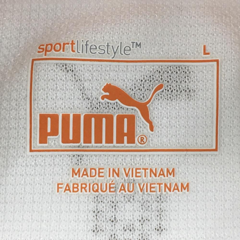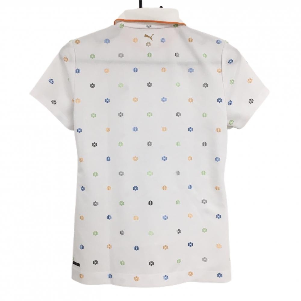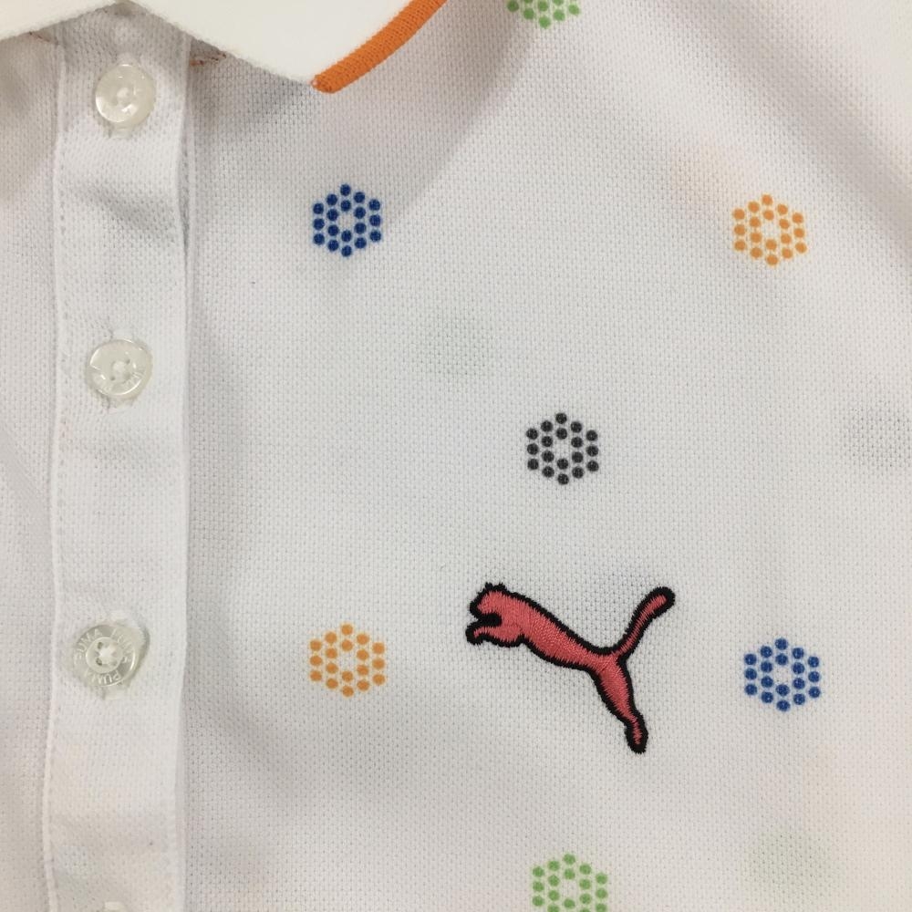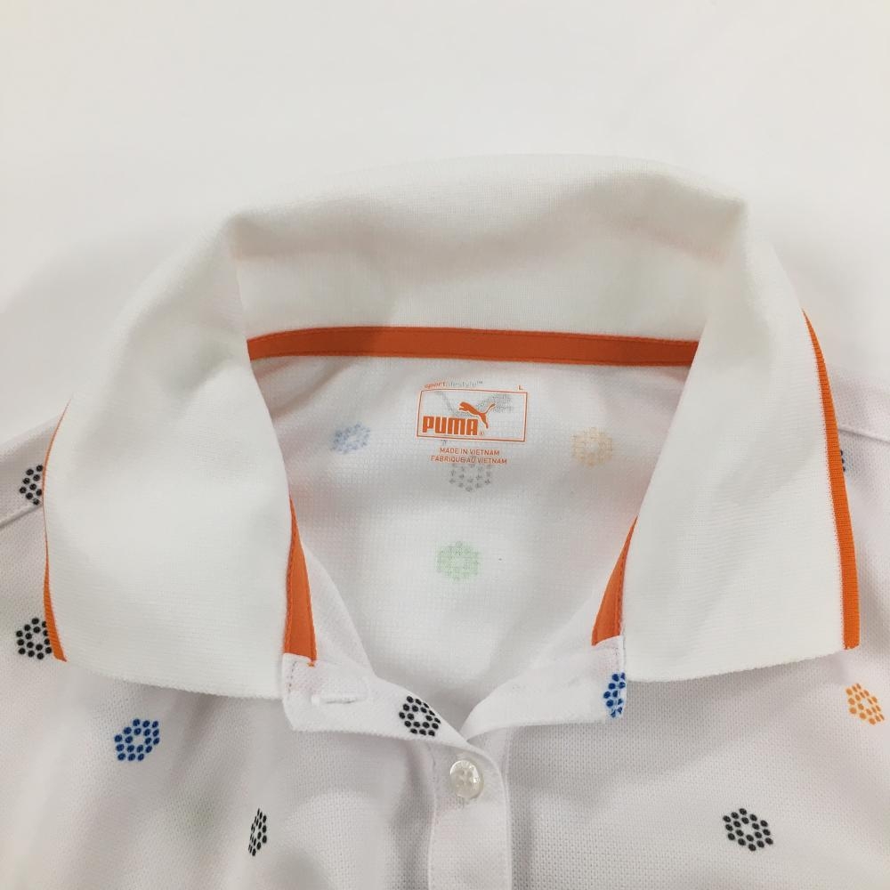 【美品】プーマ 半袖ポロシャツ 白×オレンジ ロゴ総柄 レディース L ゴルフウェア PUMA