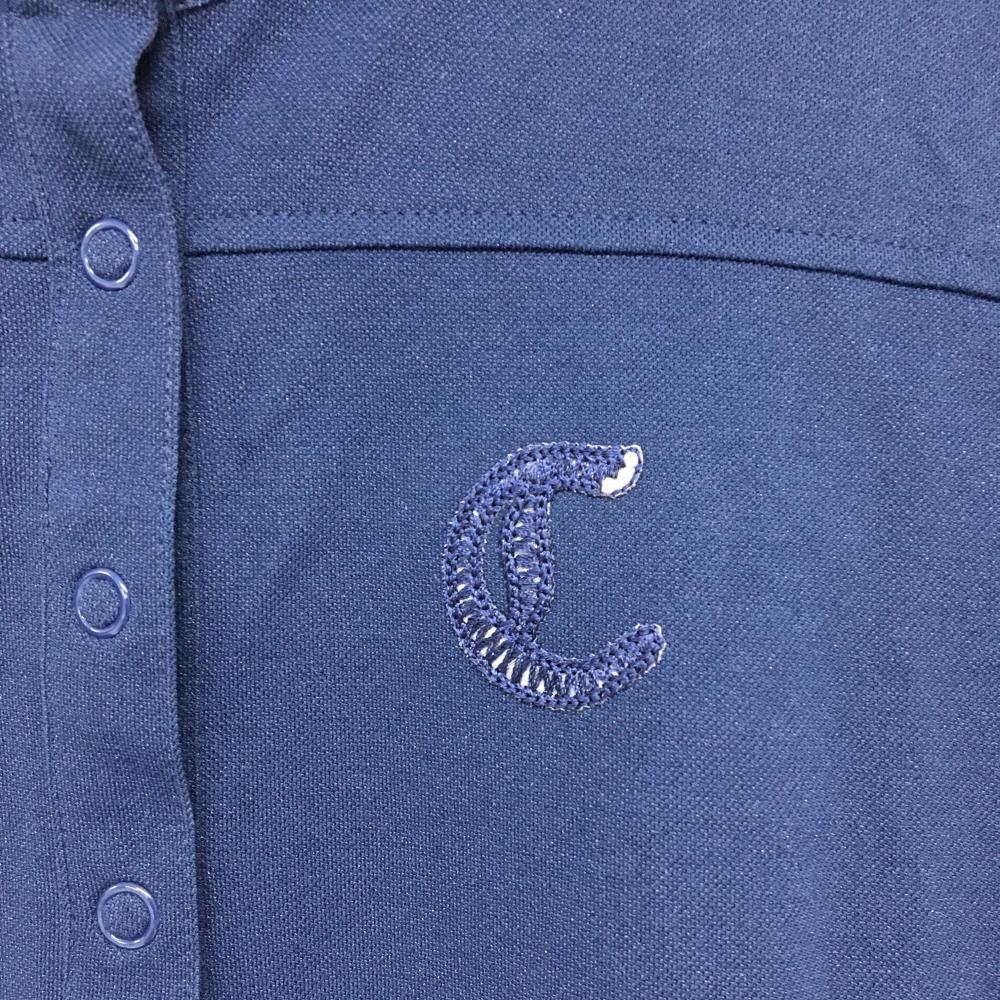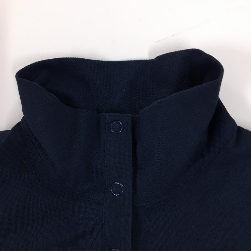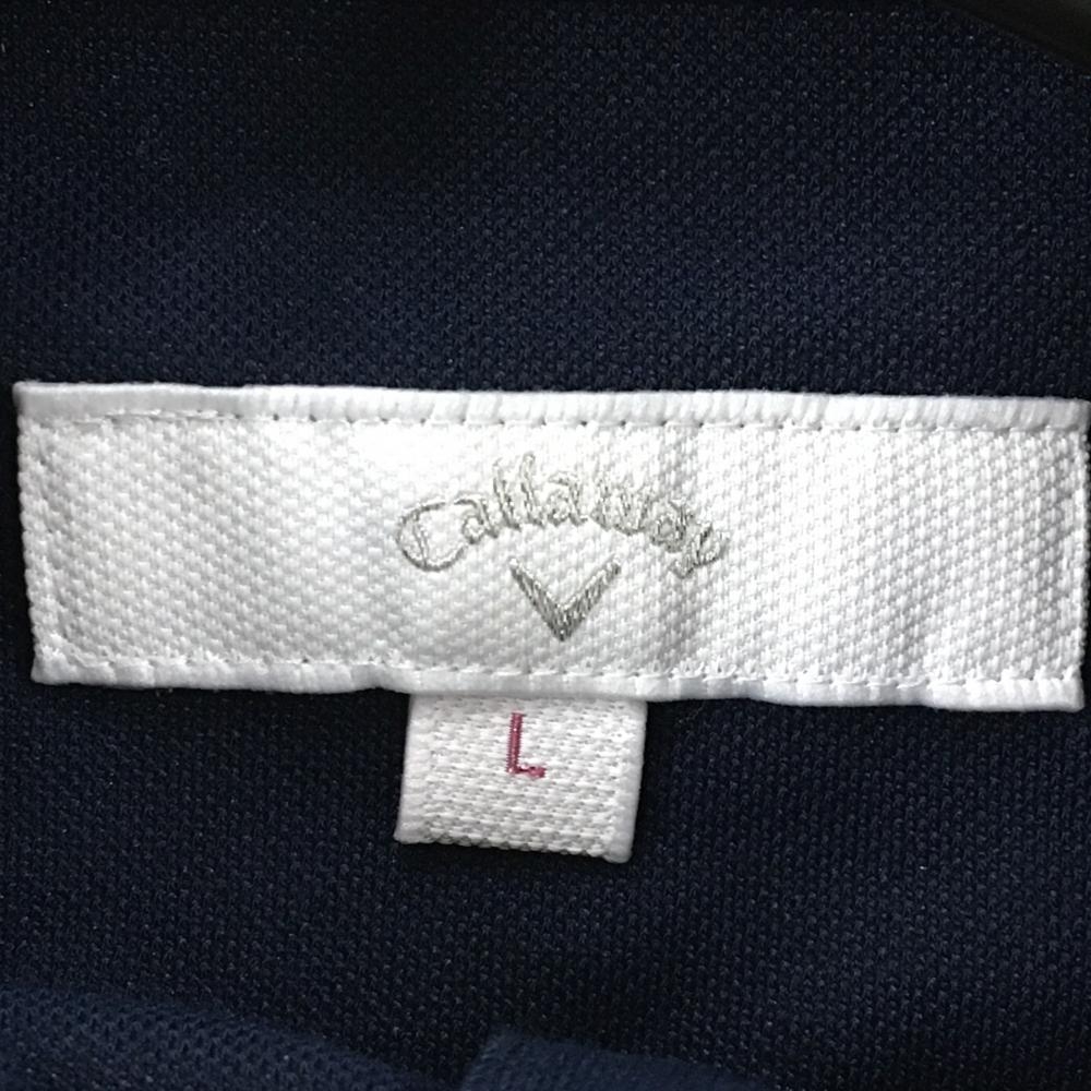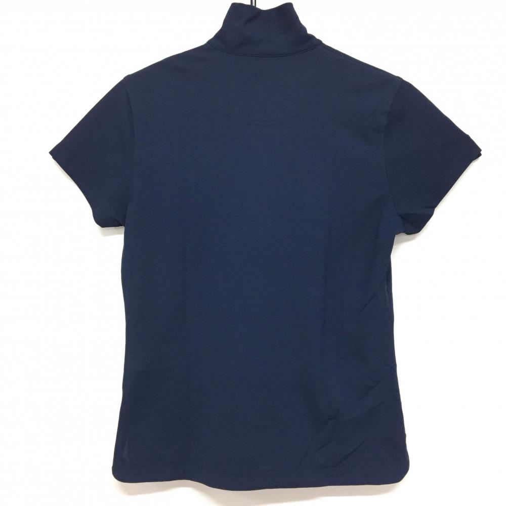 【美品】キャロウェイ 半袖ハイネックシャツ ネイビー スナップボタン ロゴ一部ラインストーン レディース L ゴルフウェア Callaway