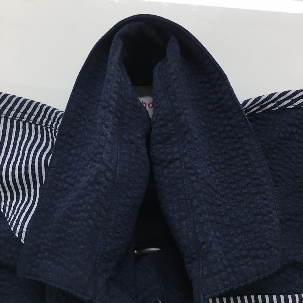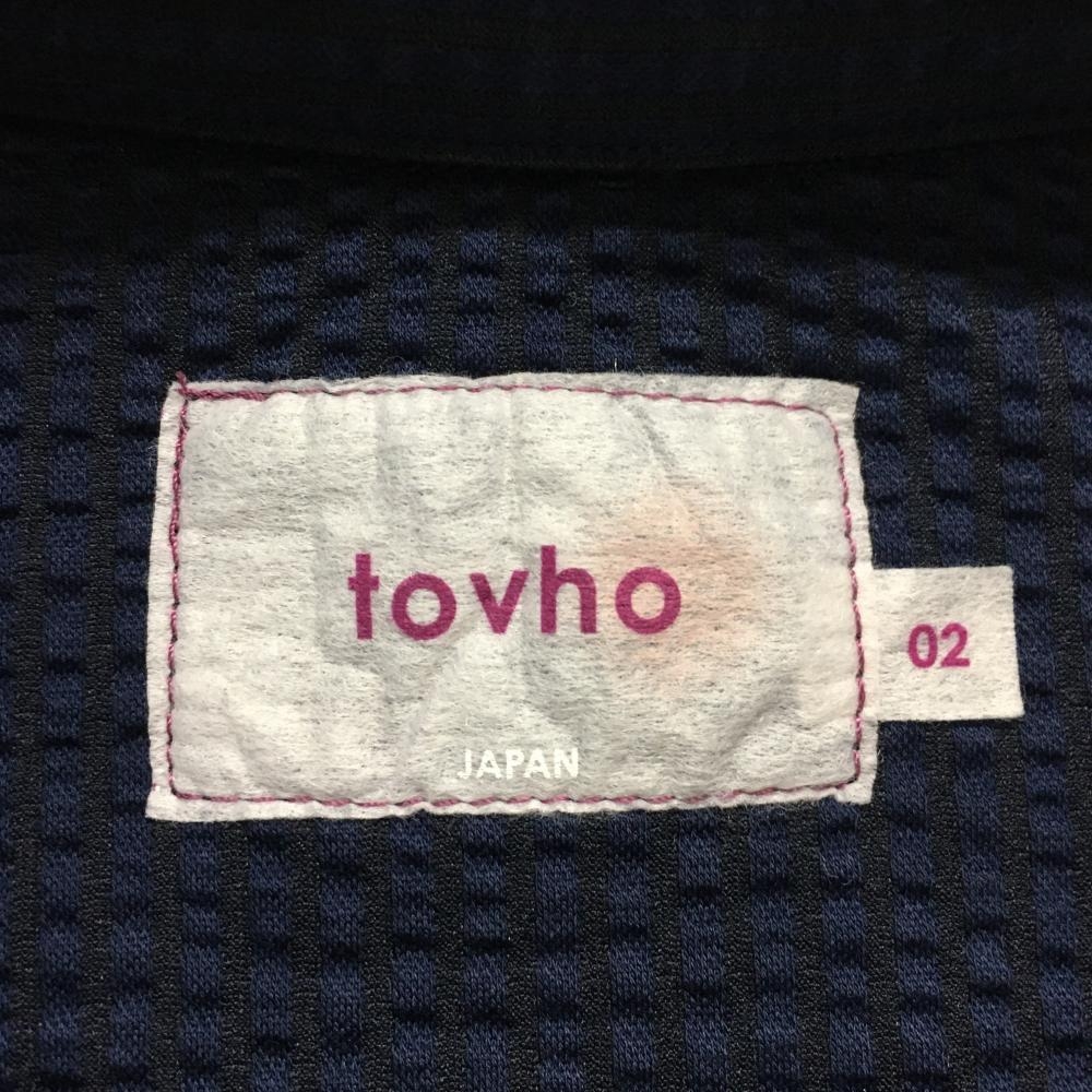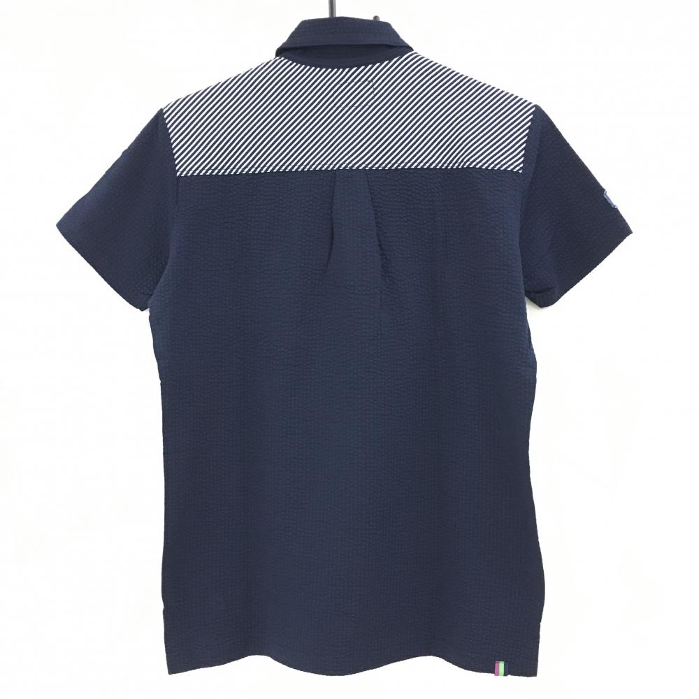 トヴホ 半袖ポロシャツ ネイビー×白 サッカー生地 一部ストライプ メンズ 02 ゴルフウェア tovho