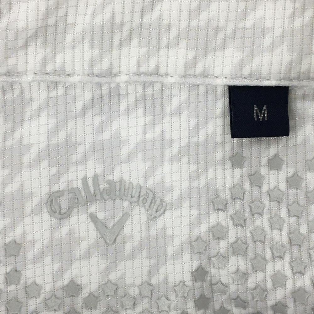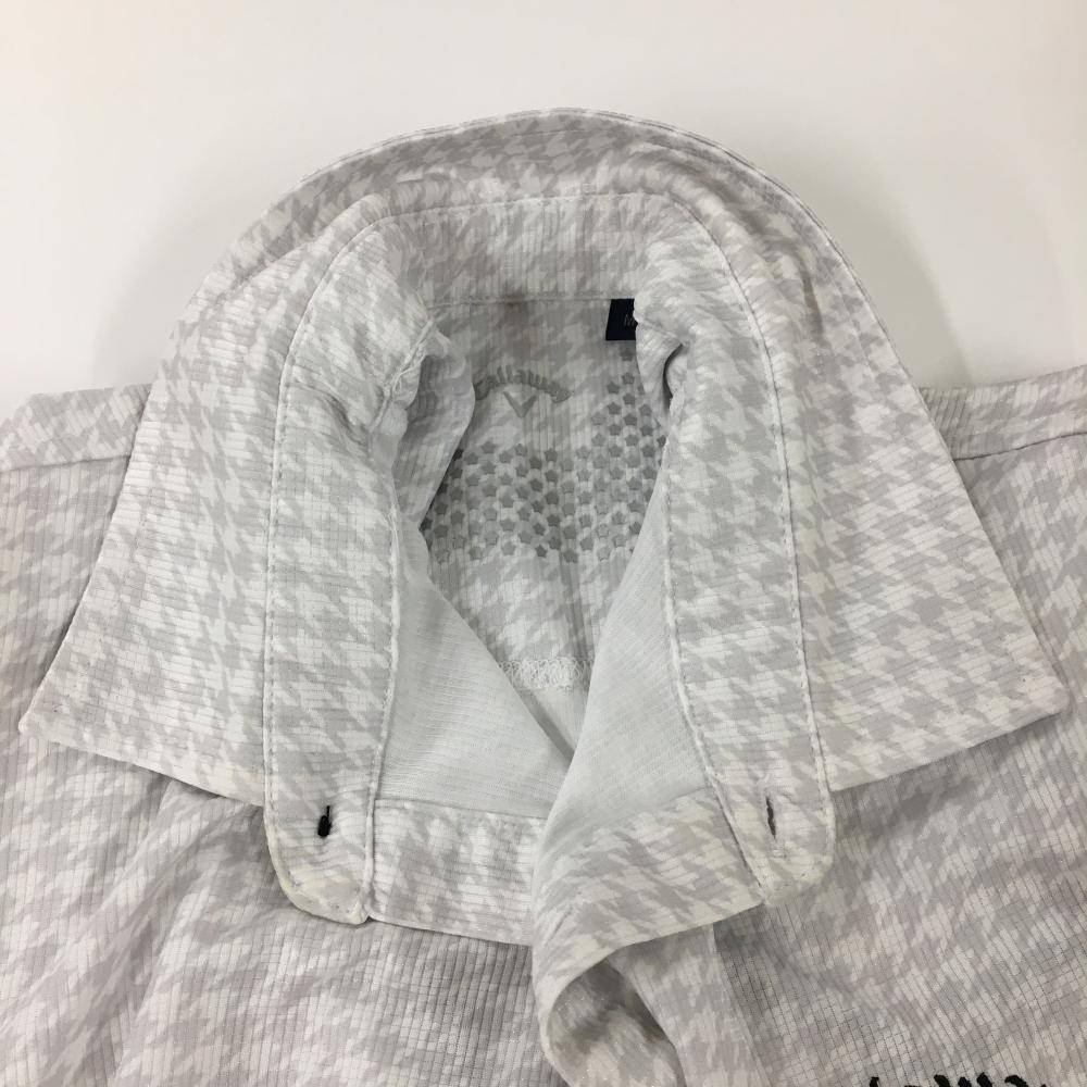 キャロウェイ 半袖ポロシャツ 白×グレー 千鳥格子 メンズ M ゴルフウェア Callaway