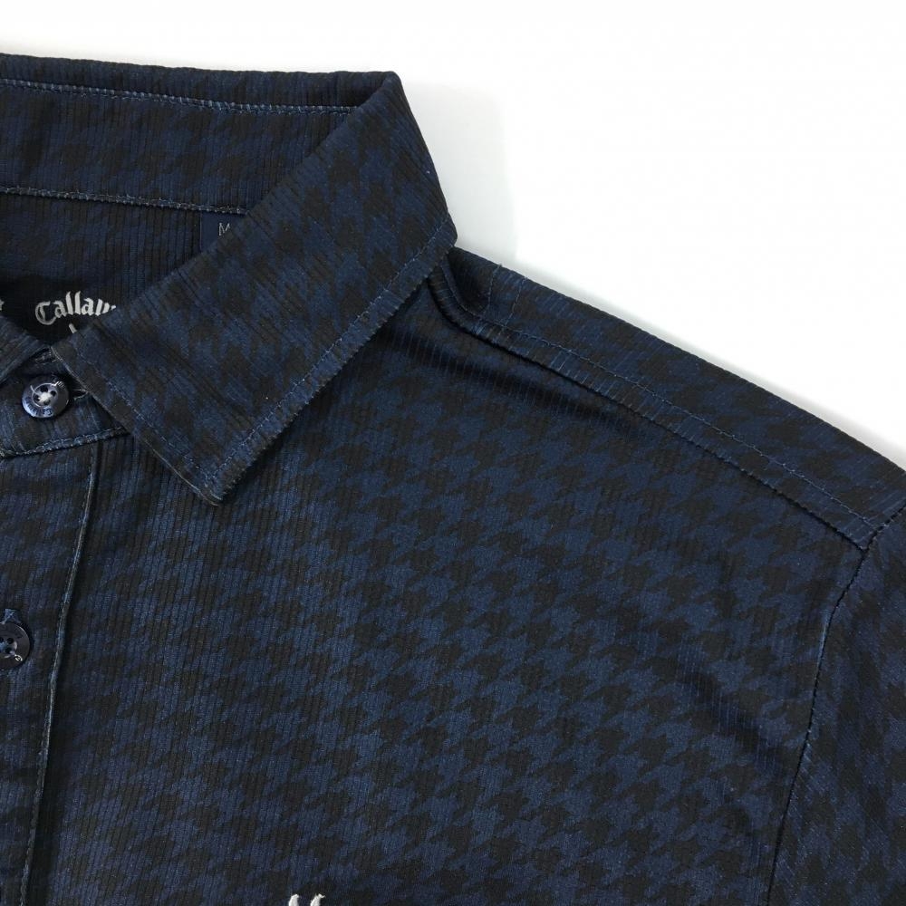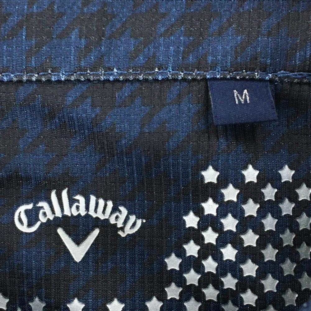 キャロウェイ 半袖ポロシャツ ネイビー×黒 千鳥格子 メンズ M ゴルフウェア Callaway