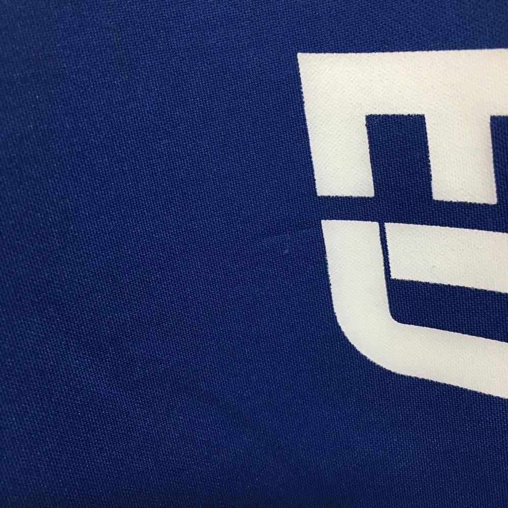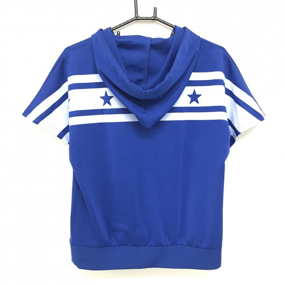 【超美品】クアルトユナイテッド 半袖パーカー ブルー×ライトパープル ビッグロゴ トレーナー レディース L ゴルフウェア CUARTO UNITED