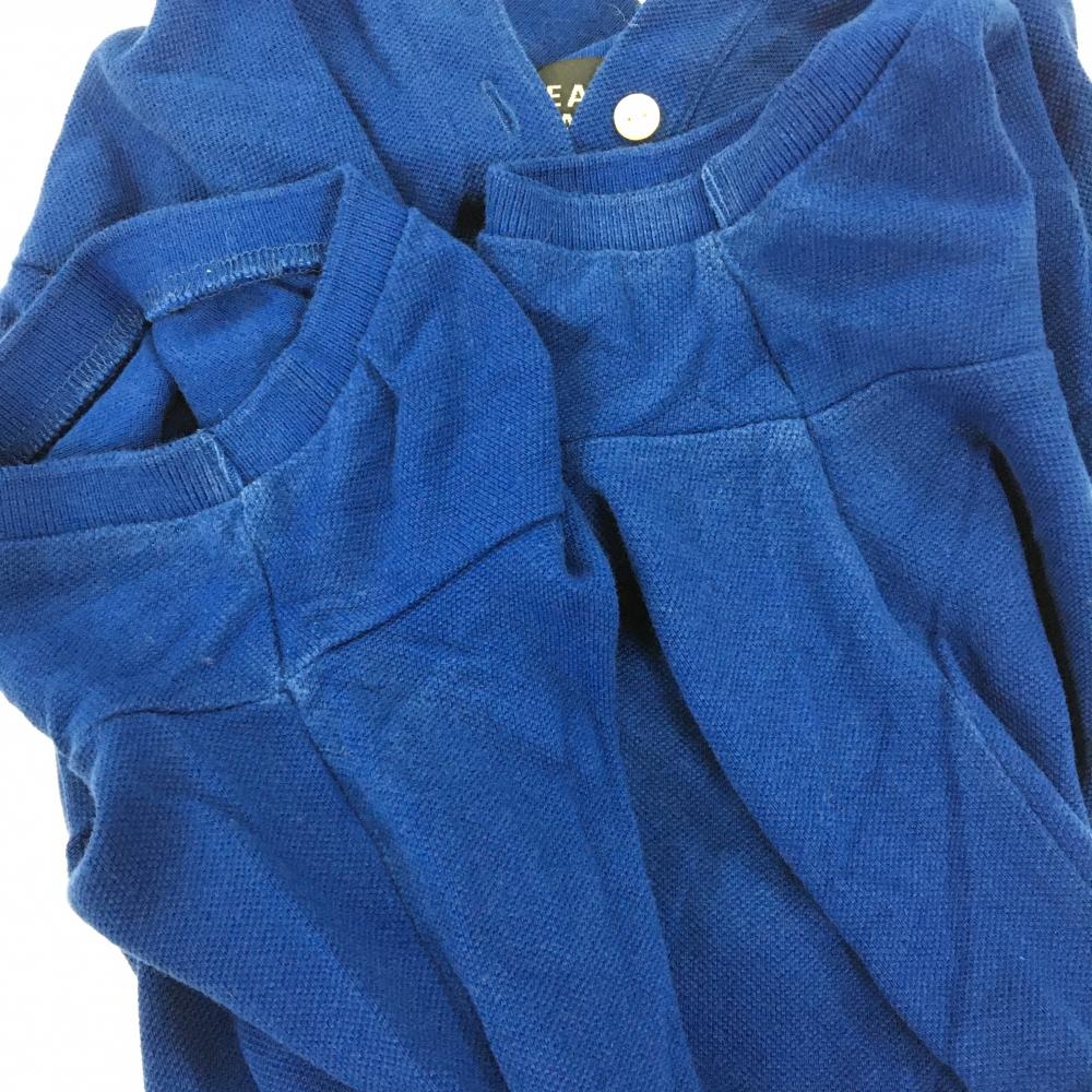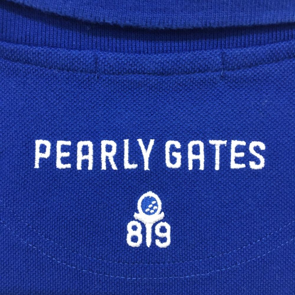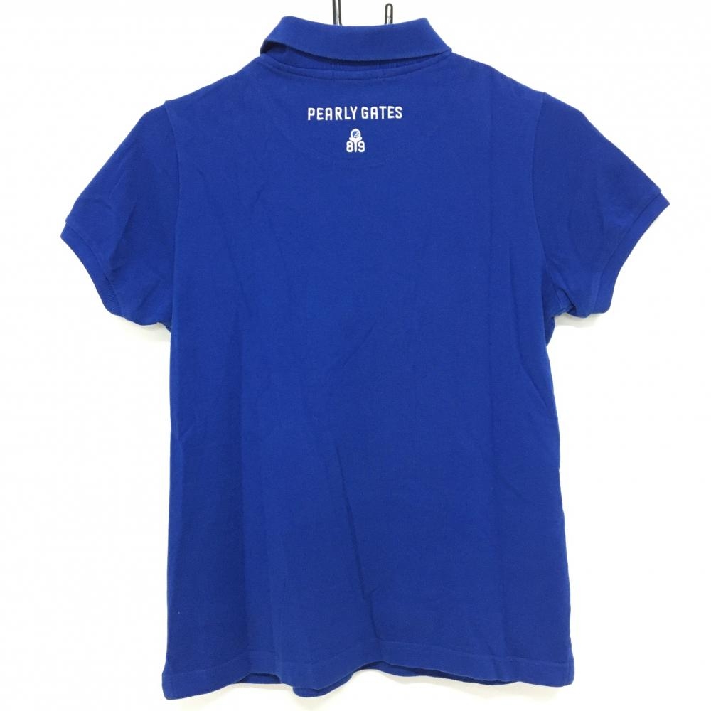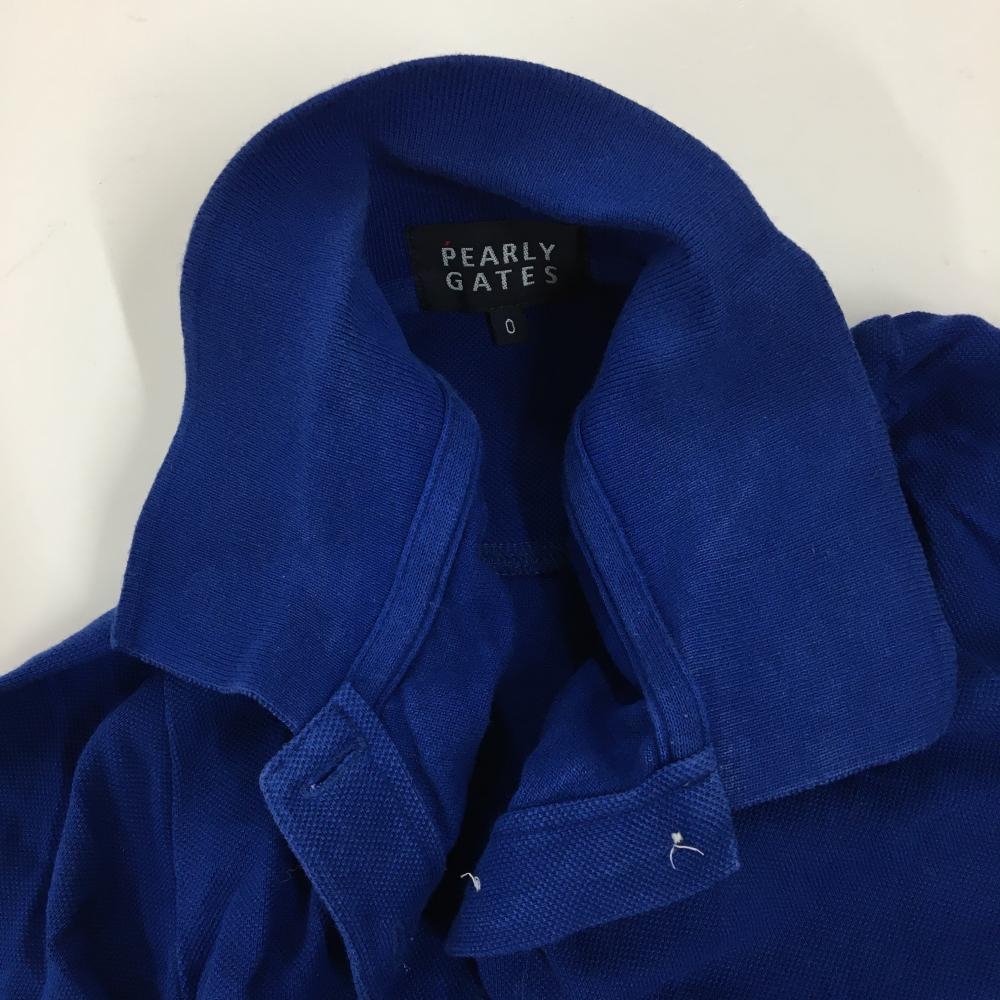 パーリーゲイツ 半袖ポロシャツ ブルー×白 袖フェルトロゴ レディース 0(S) ゴルフウェア PEARLY GATES