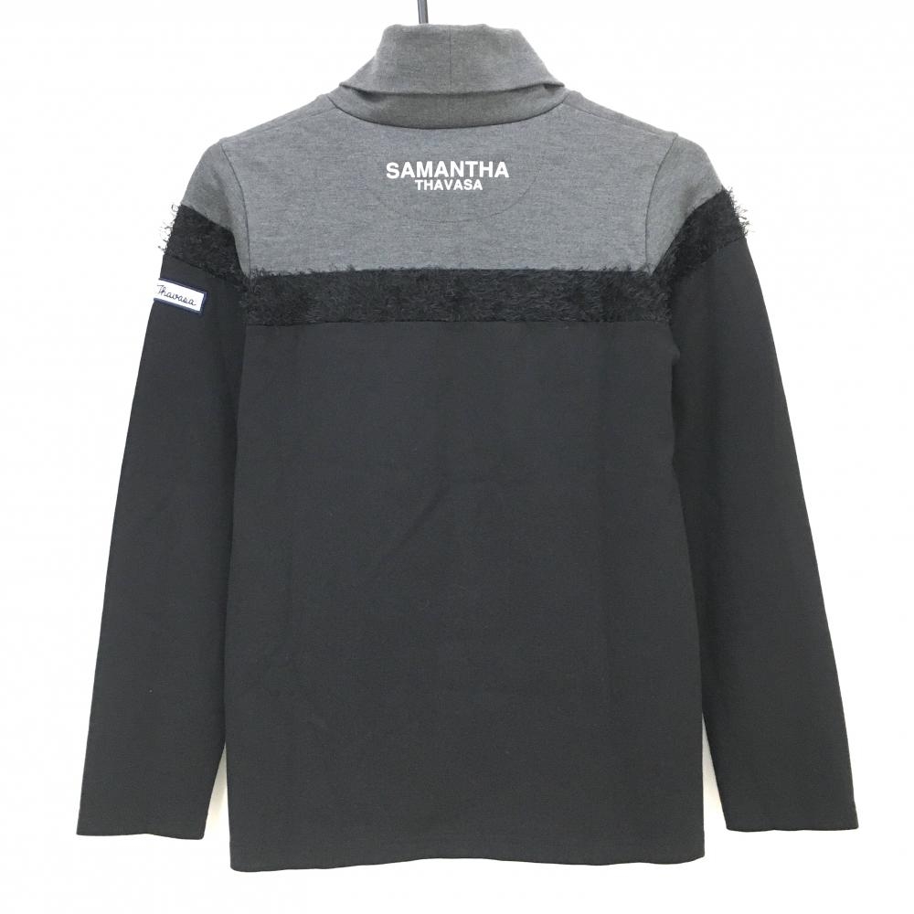 【超美品】サマンサタバサNo.7 長袖タートルネックシャツ 黒×グレー 一部起毛素材 レディース 38(M) ゴルフウェア Samantha Thavasa