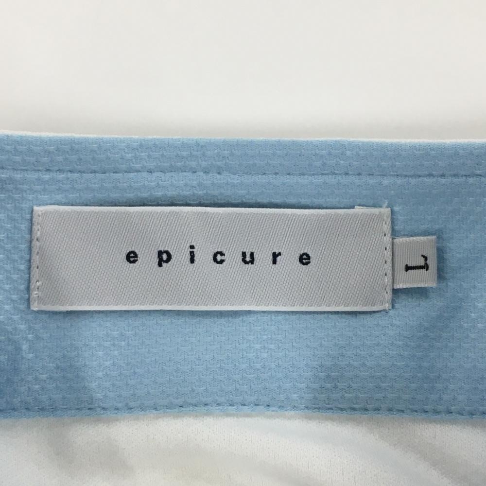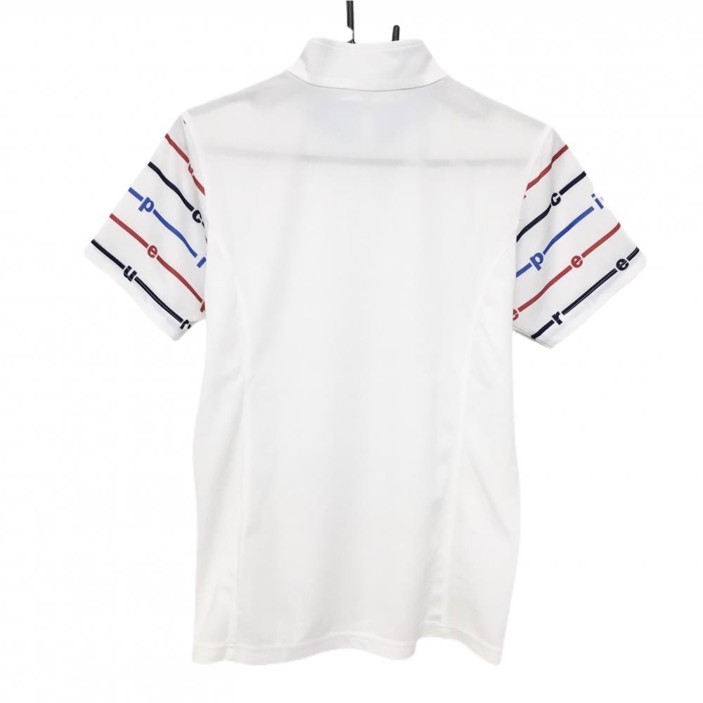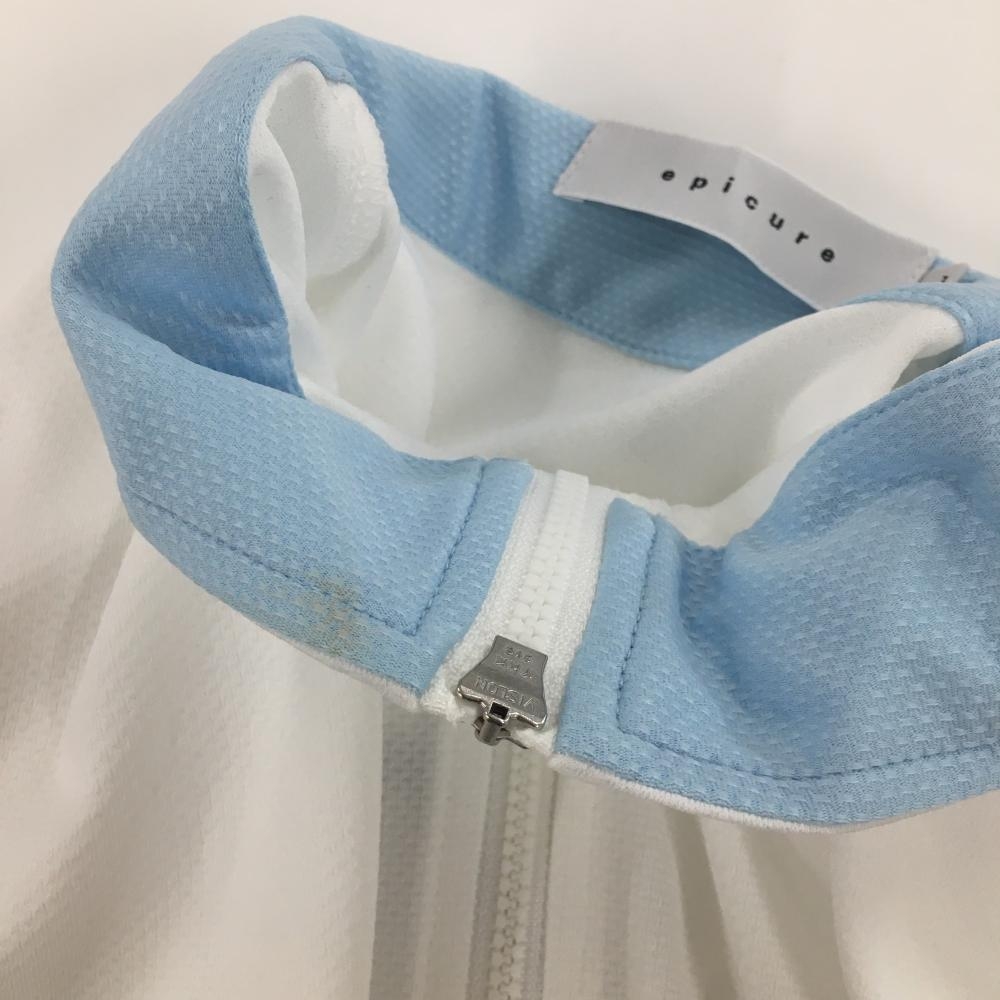 【美品】エピキュール 半袖ハイネックシャツ 白×ブルー×レッド ハーフジップ 袖ボーダー風 レディース L ゴルフウェア epicure