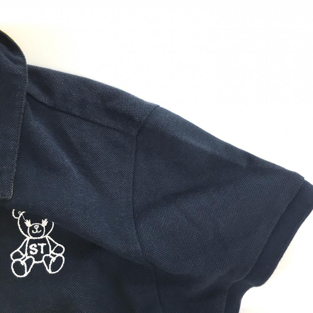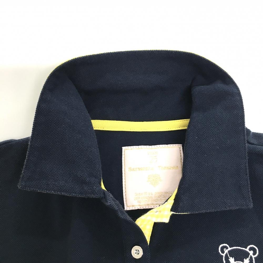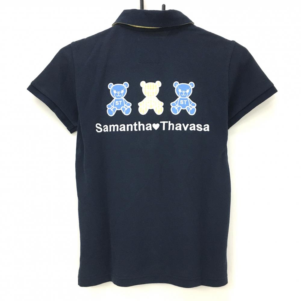 サマンサタバサUNDER25 半袖ポロシャツ ネイビー 襟裏ギンガムチェック ベア刺しゅう レディース M ゴルフウェア Samantha Thavasa