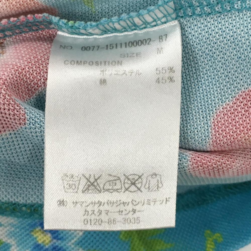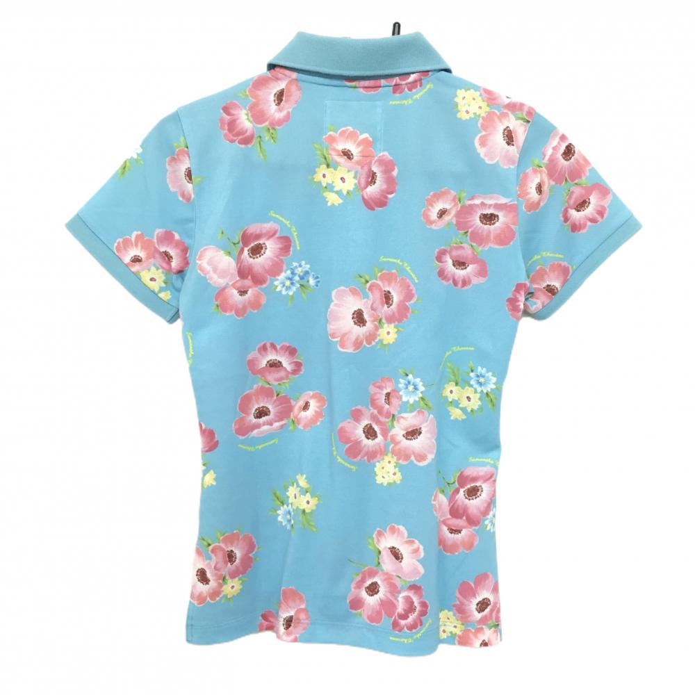 サマンサタバサUNDER25 半袖ポロシャツ ライトブルー×ピンク 花柄 レディース M ゴルフウェア Samantha Thavasa