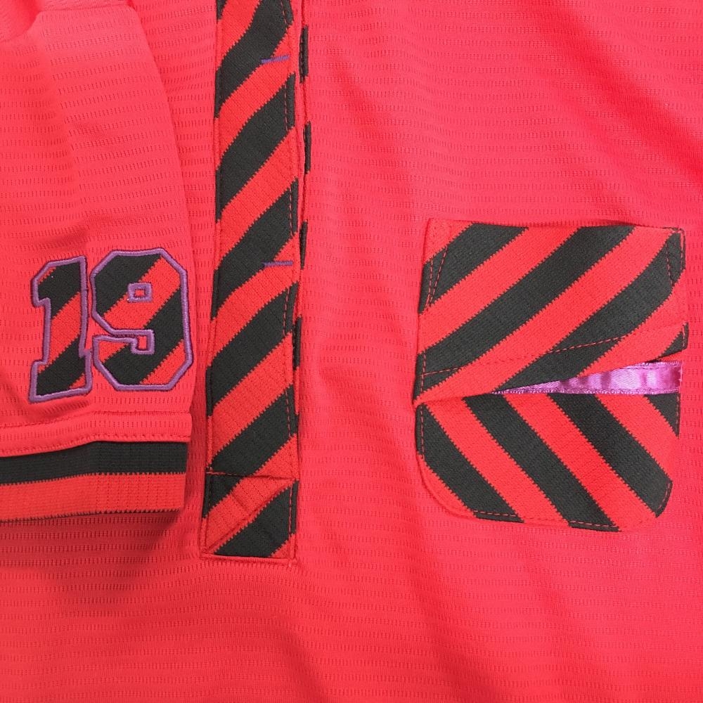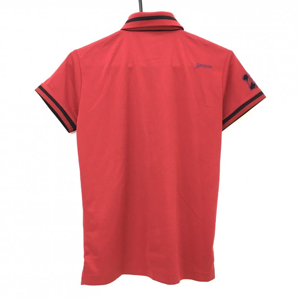 【超美品】スリクソン 半袖ポロシャツ レッド×黒 一部斜めストライプ 胸ポケット レディース L ゴルフウェア SRIXON