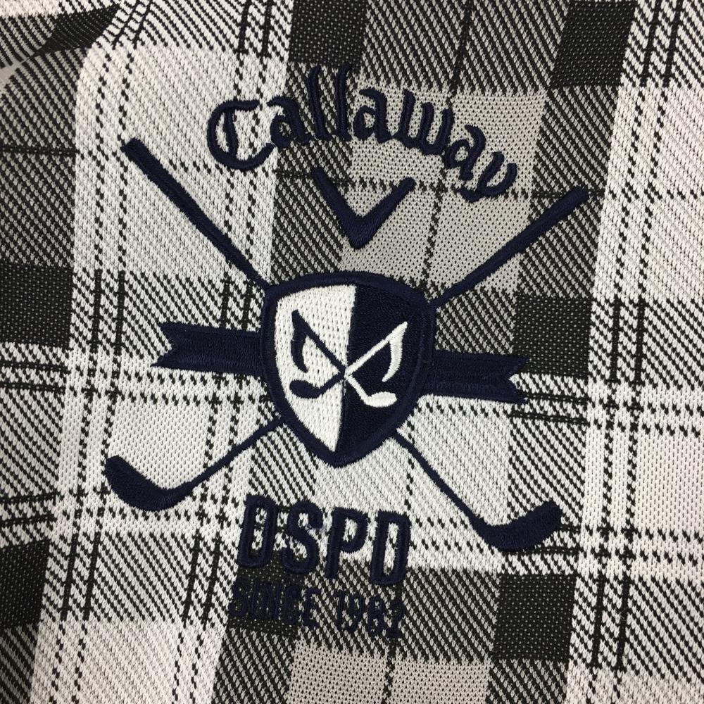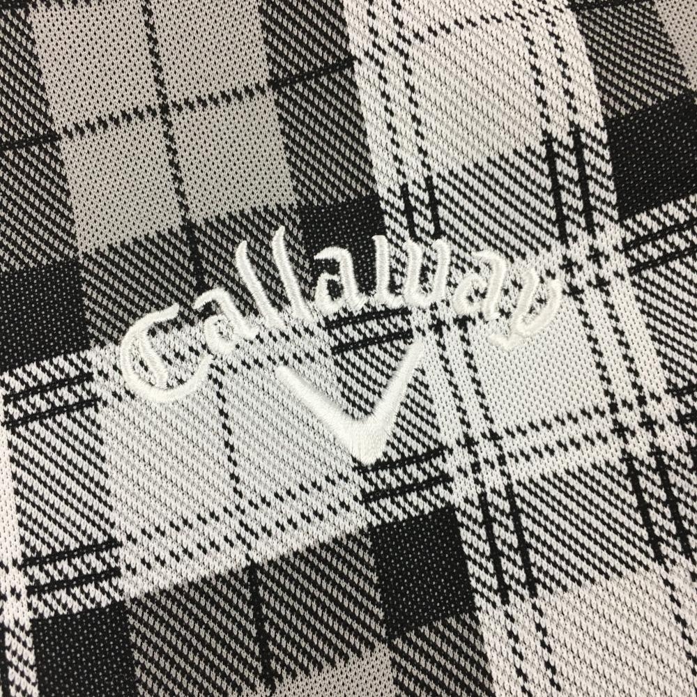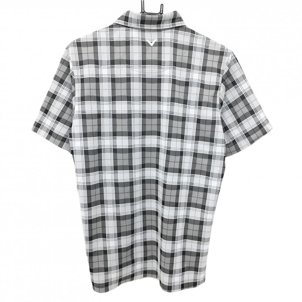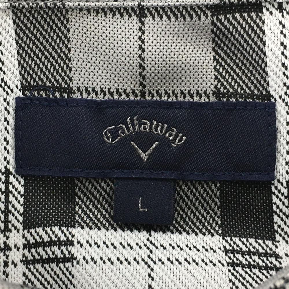 【超美品】キャロウェイ 半袖ポロシャツ ライトグレー×グレー チェック ロゴ刺しゅう メンズ L ゴルフウェア Callaway