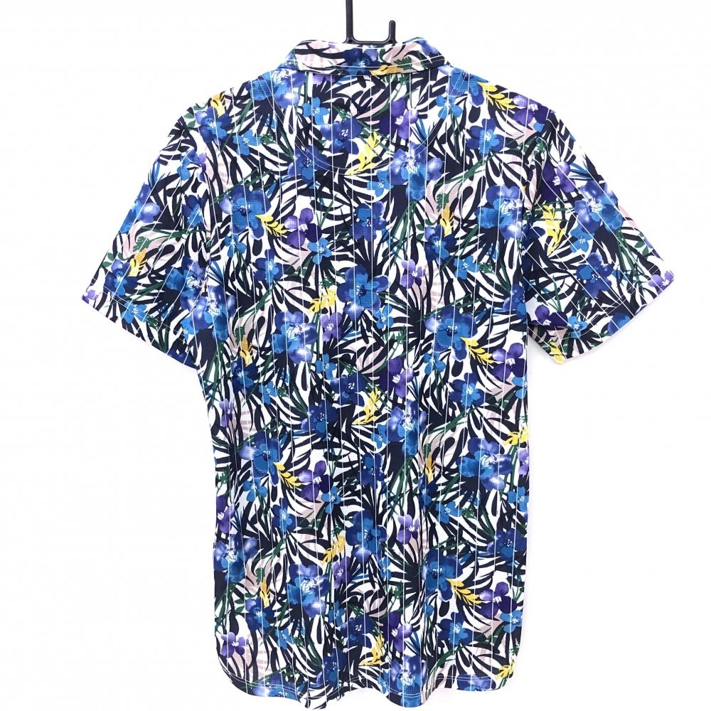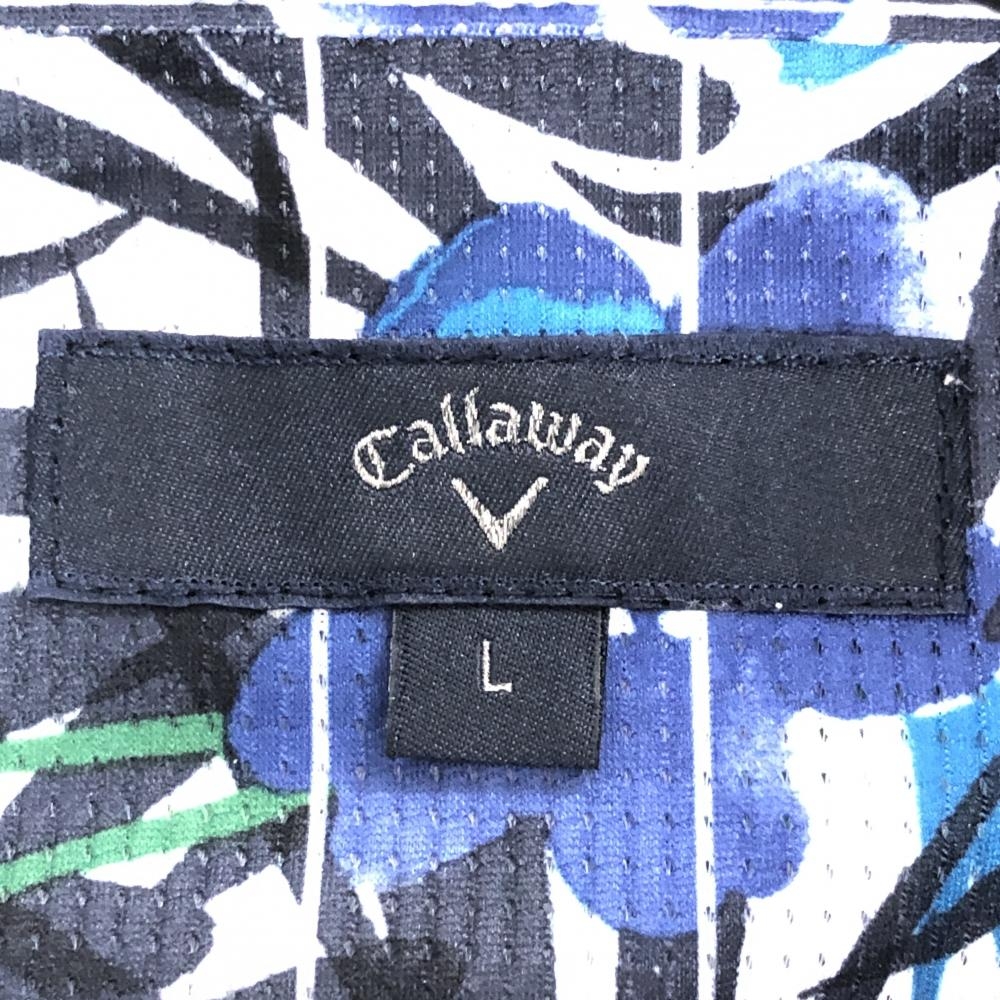 【超美品】キャロウェイ 半袖ポロシャツ 白×ブルー 花柄 ストライプ ボタンダウン メンズ L ゴルフウェア Callaway