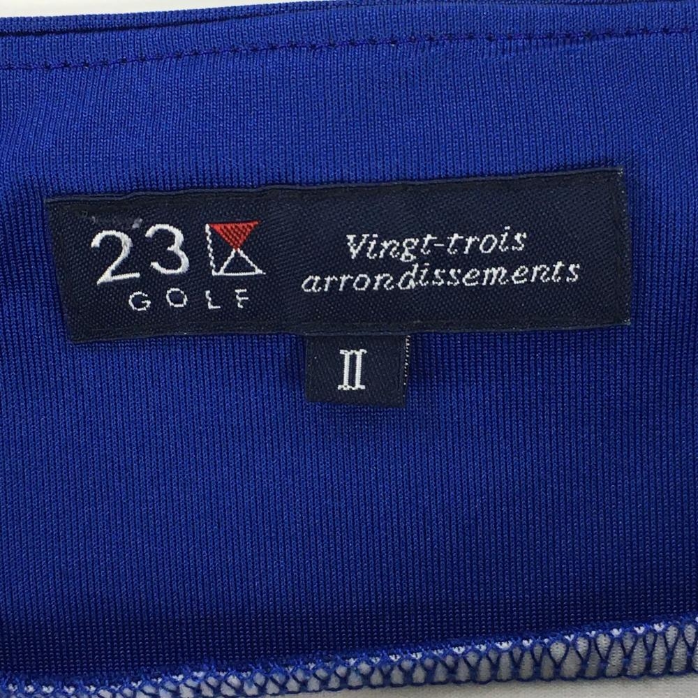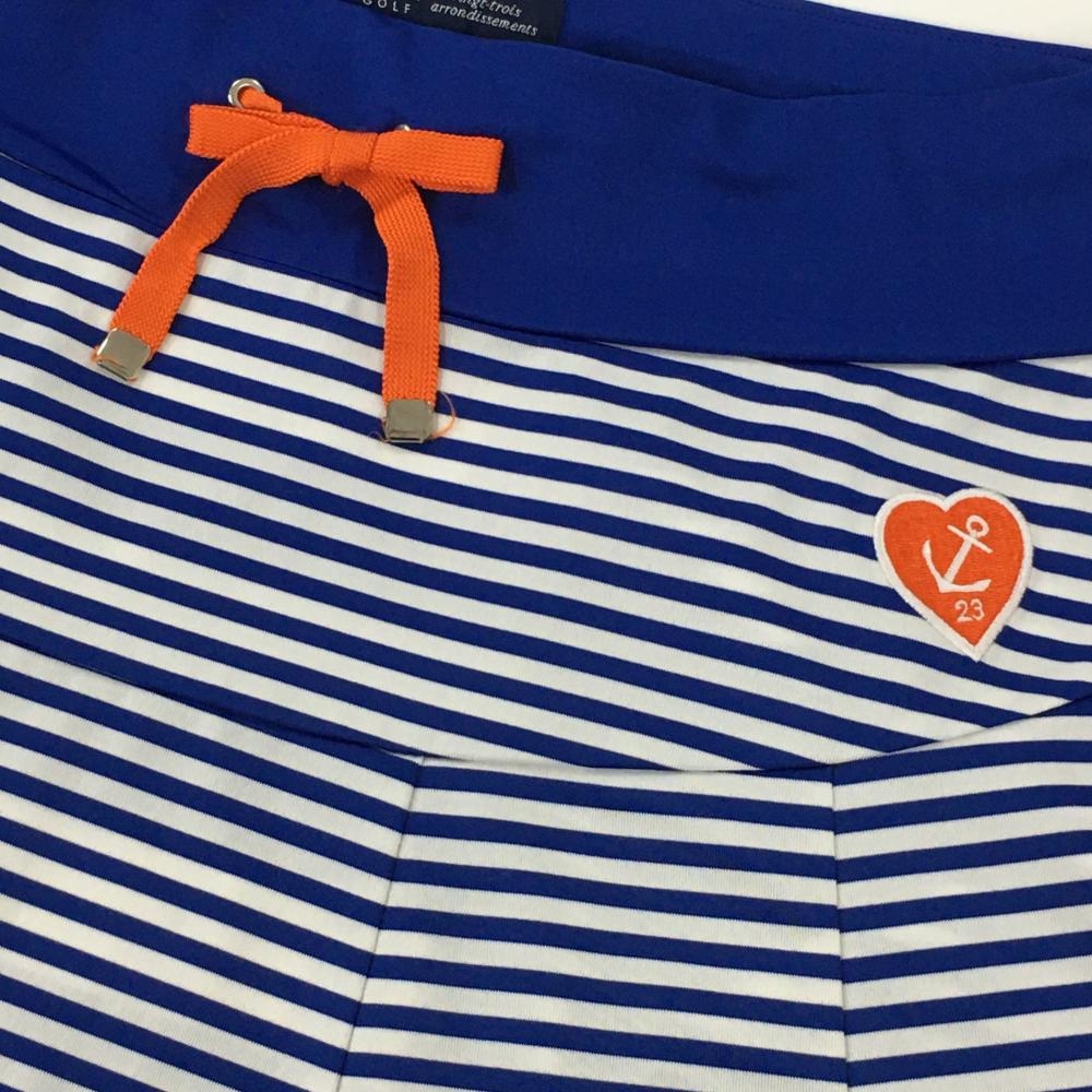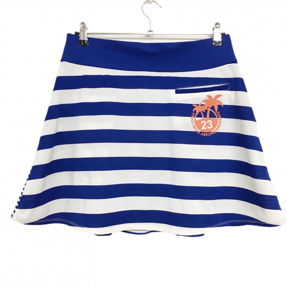 23区ゴルフ スカート ブルー×白 ボーダー ウエストゴム&調節紐 ヤシの木プリント レディース II(L) ゴルフウェア 23区