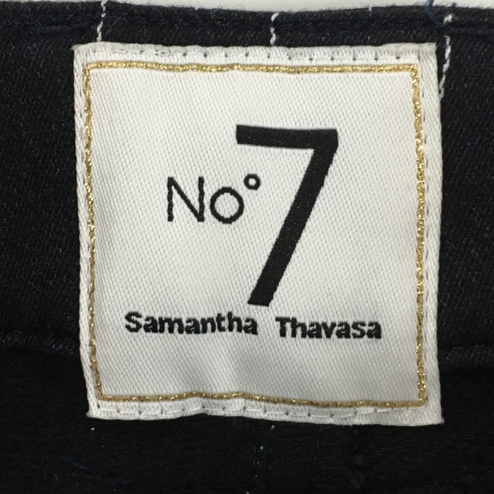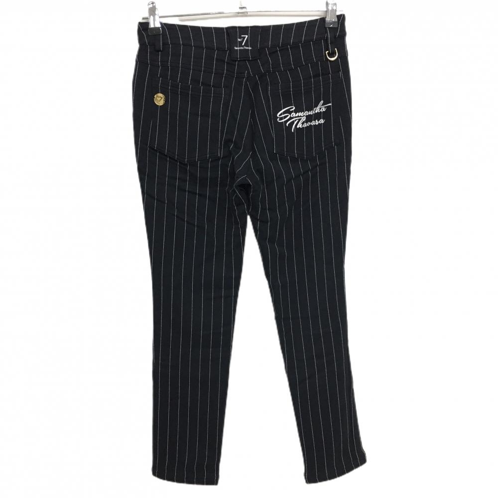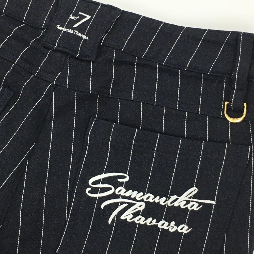 【超美品】サマンサタバサNo.7 パンツ ダークネイビー×白 ストライプ 裏微起毛 レディース 36(S) ゴルフウェア Samantha Thavasa