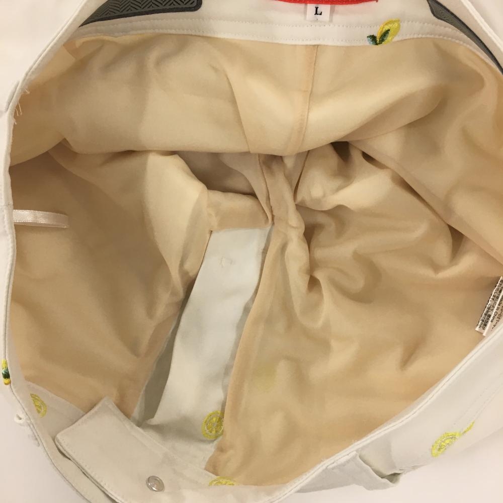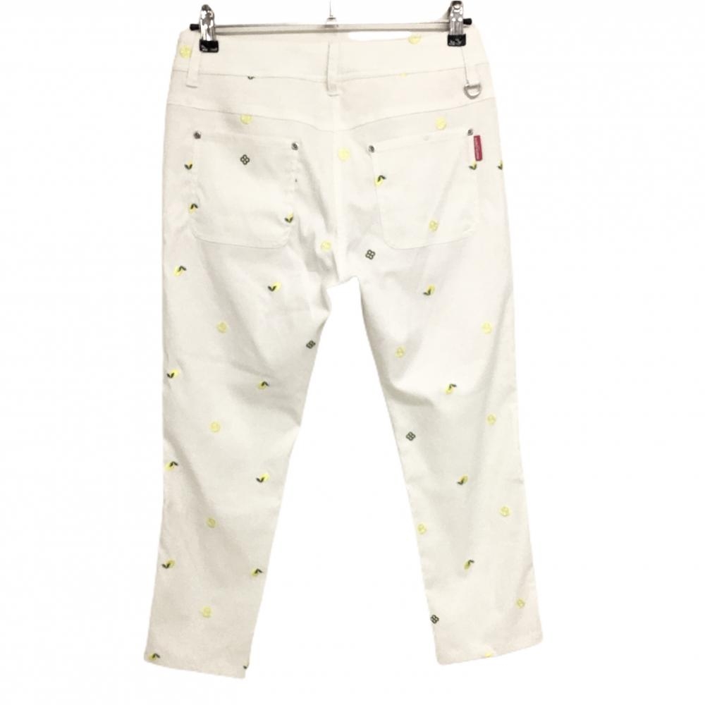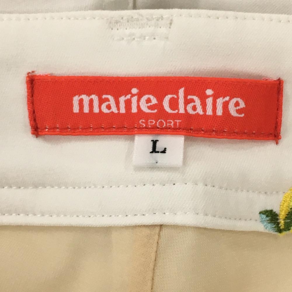マリクレールスポール 半端丈パンツ 白×イエロー レモン刺しゅう総柄 一部裏地 レディース L ゴルフウェア marie claire