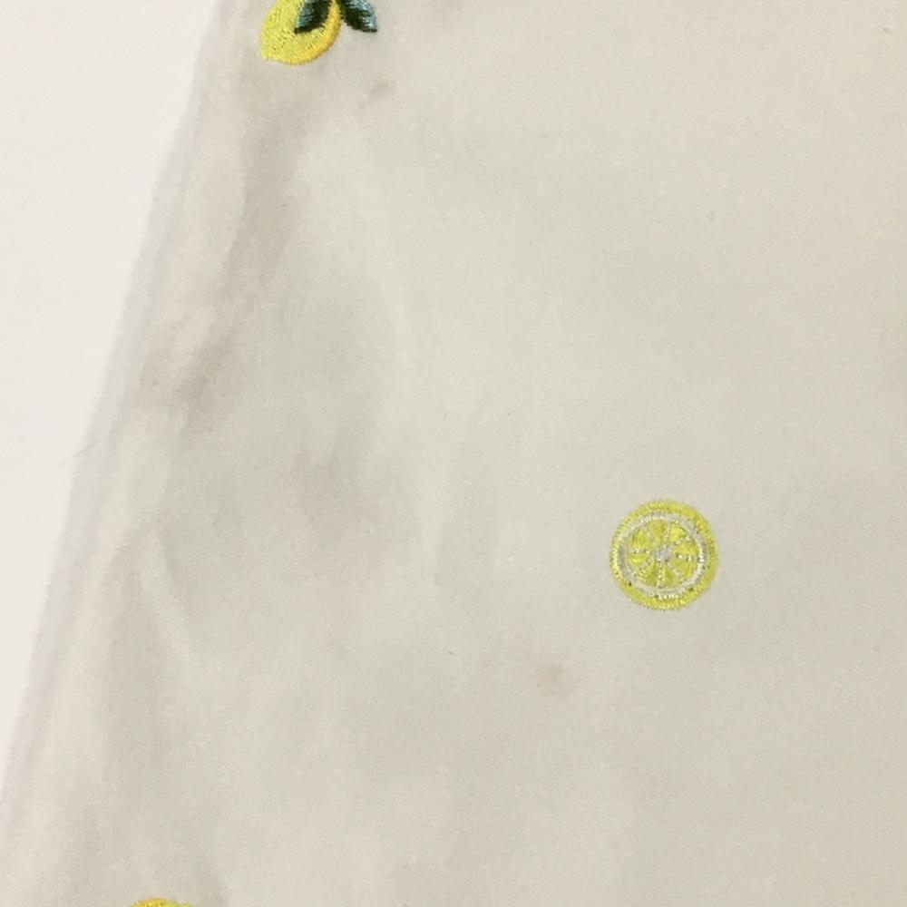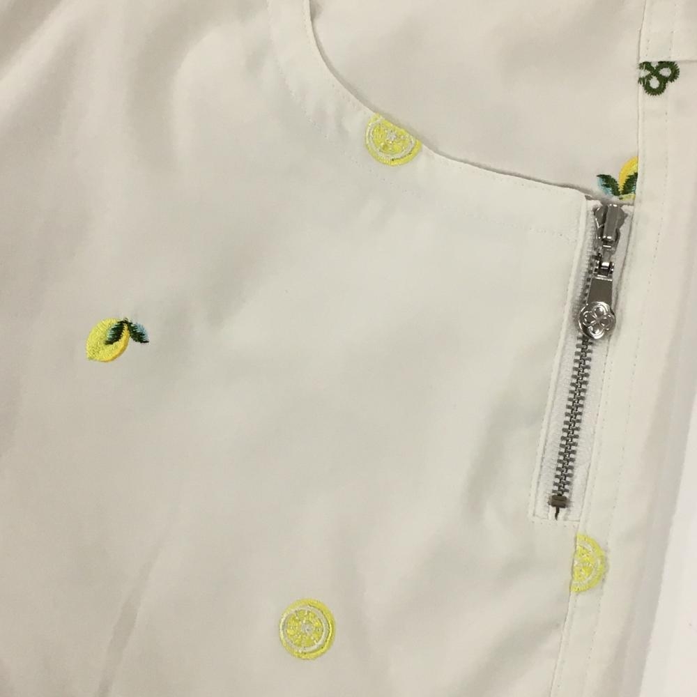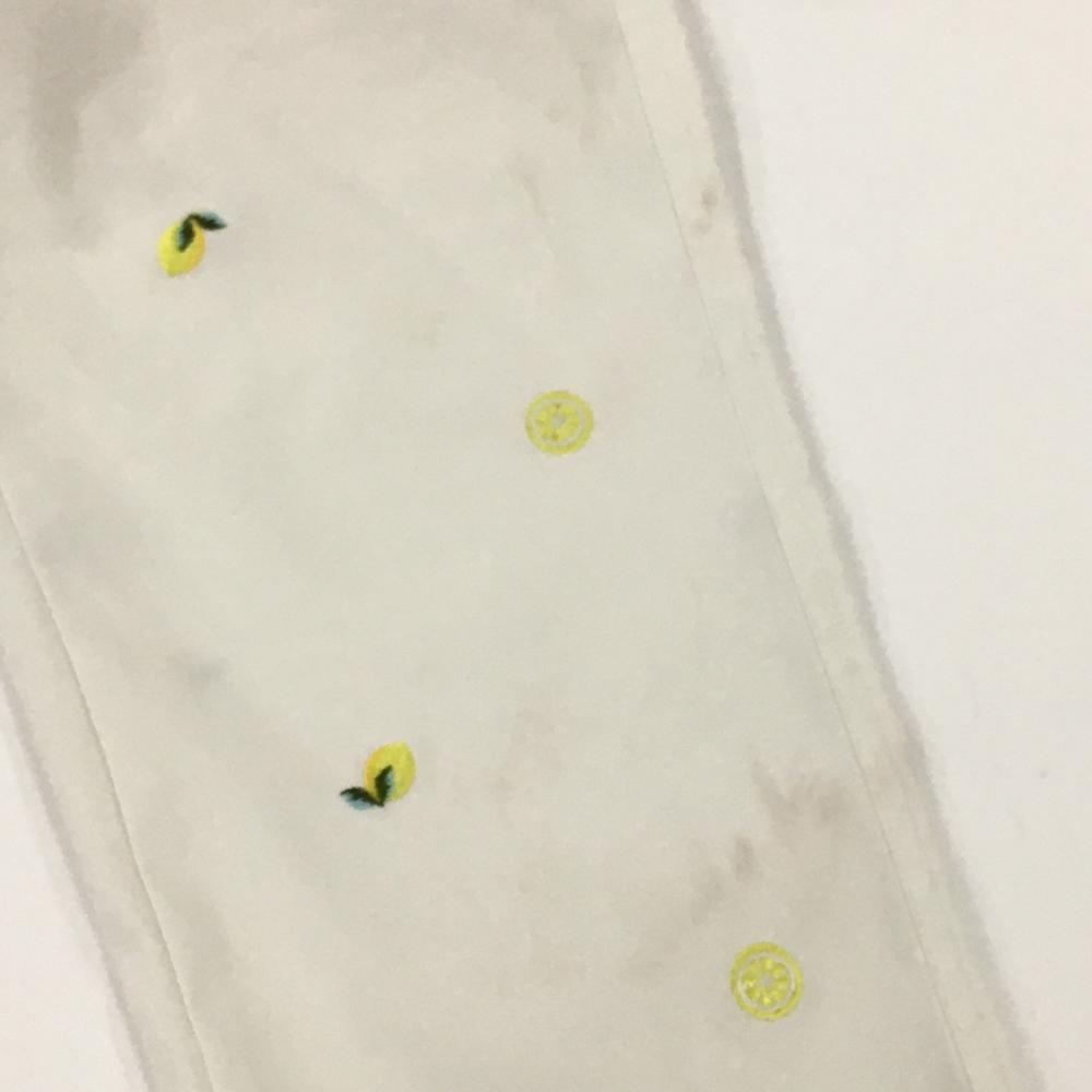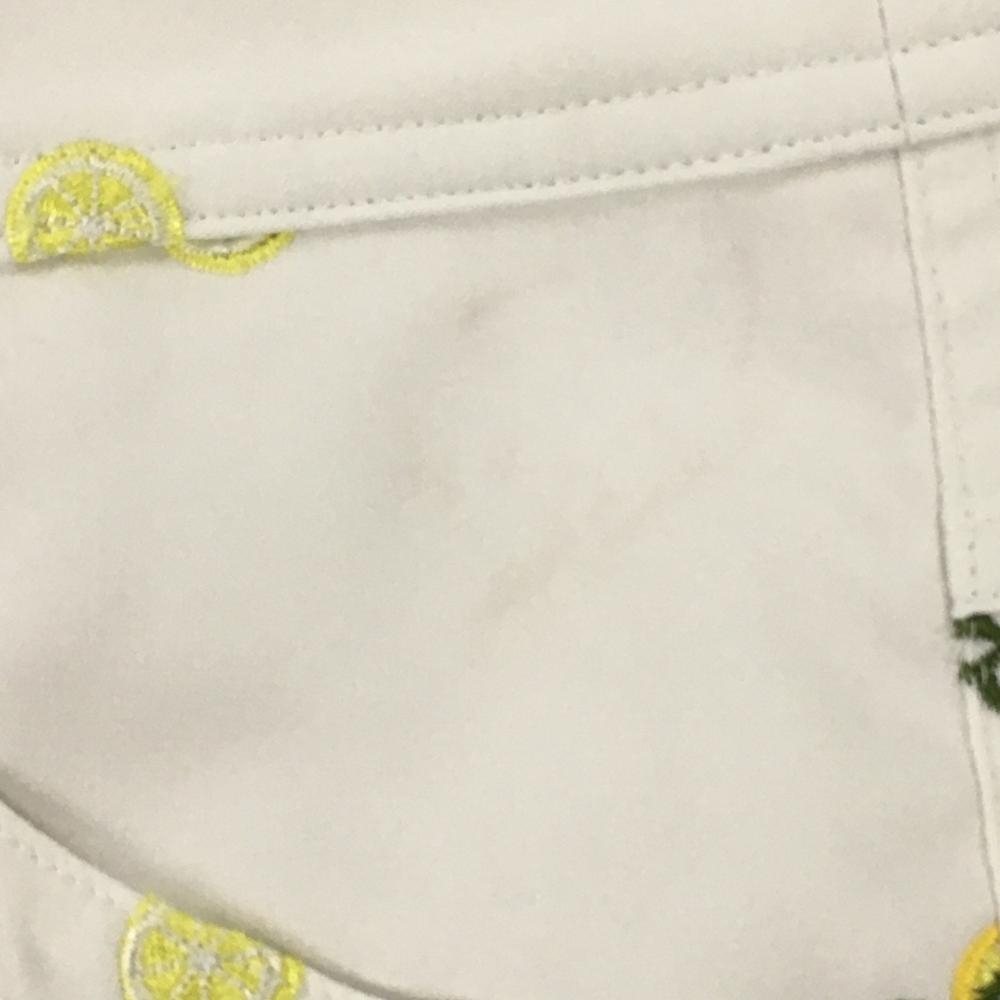 マリクレールスポール 半端丈パンツ 白×イエロー レモン刺しゅう総柄 一部裏地 レディース L ゴルフウェア marie claire