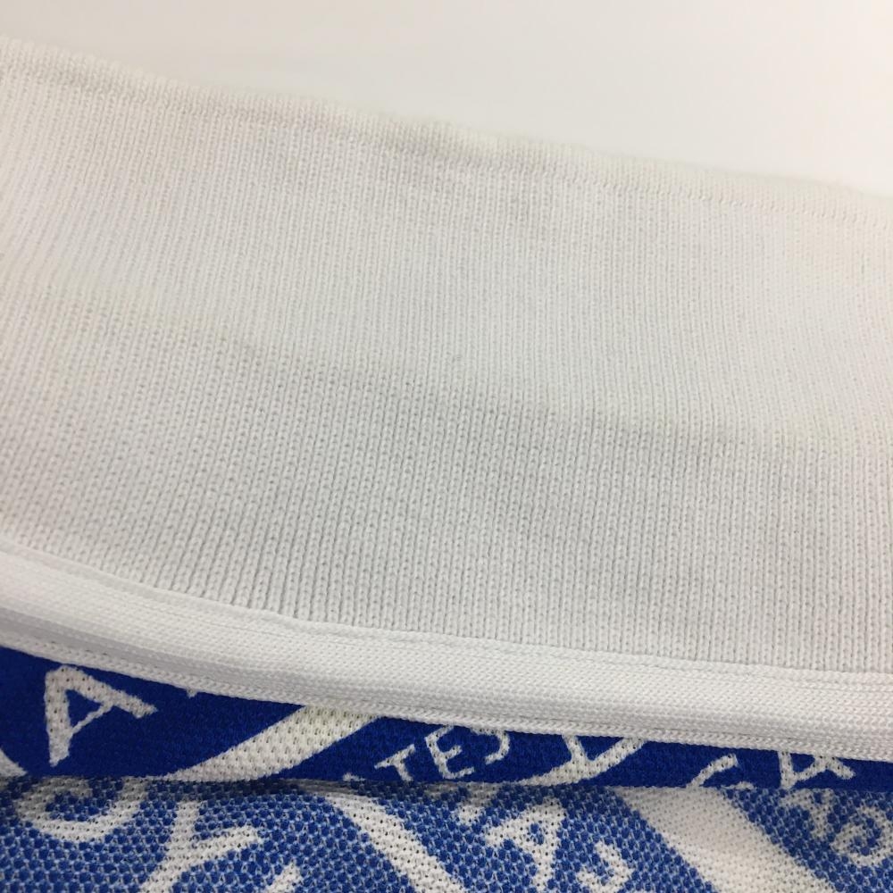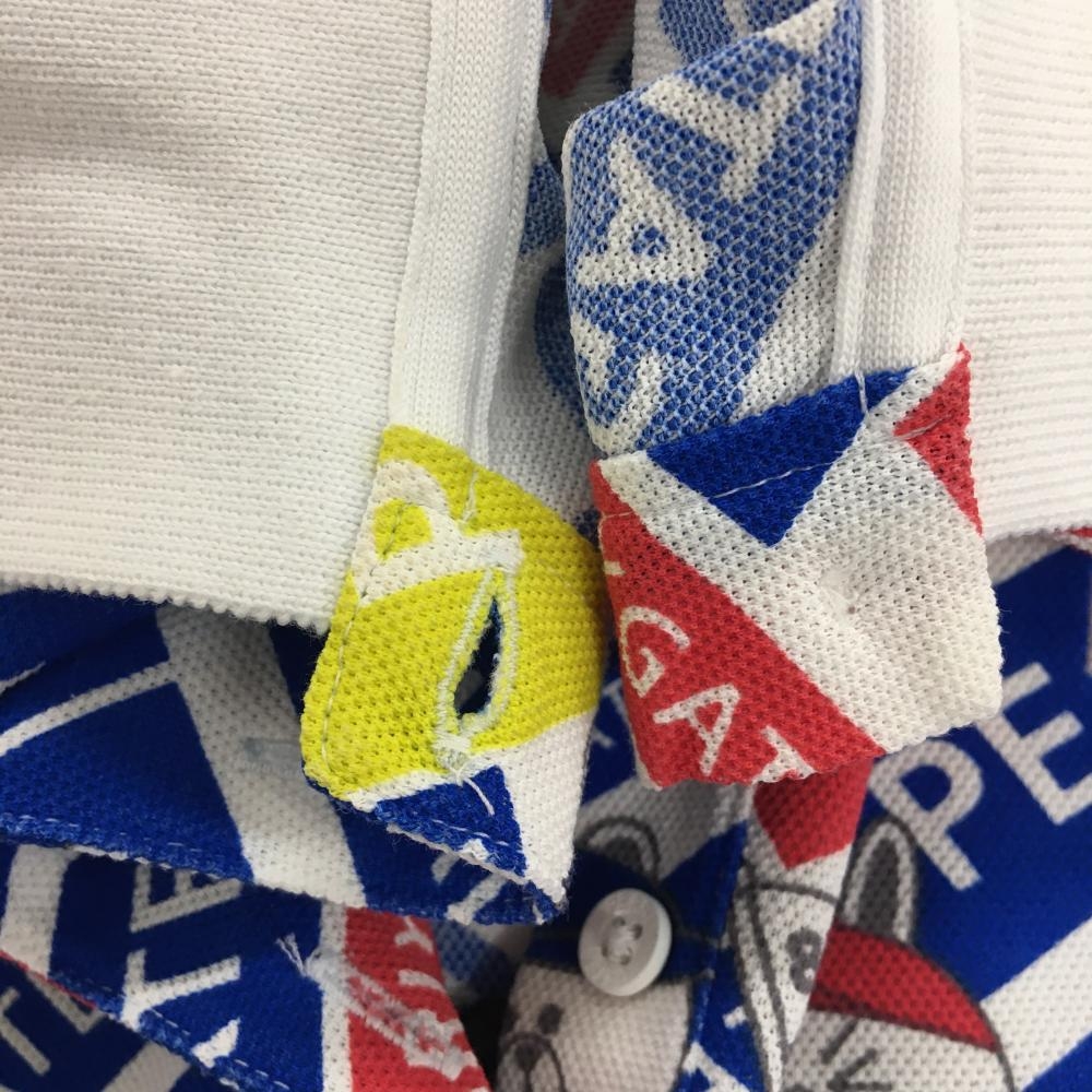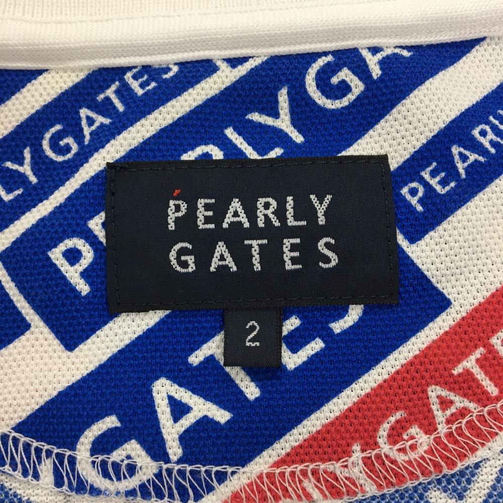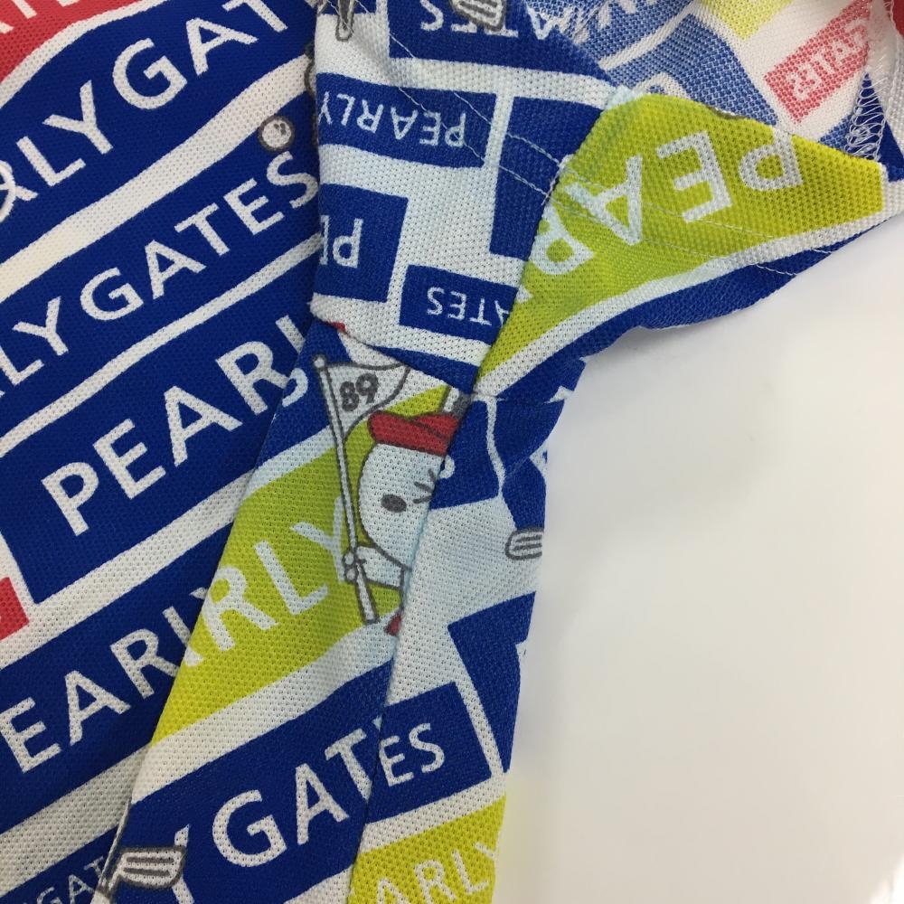 パーリーゲイツ×LINE FRIENDS 半袖ポロシャツ 白×ブルー 総柄 ロゴ レディース 2(L) ゴルフウェア PEARLY GATES