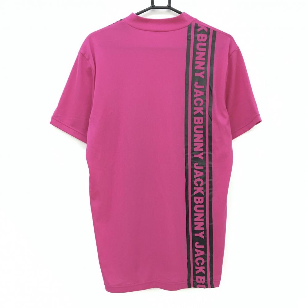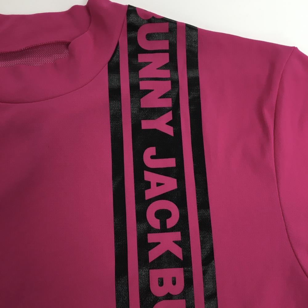 【超美品】ジャックバニー 半袖ハイネックシャツ ピンク×黒 ロゴライン メンズ 6(XL) ゴルフウェア Jack Bunny
