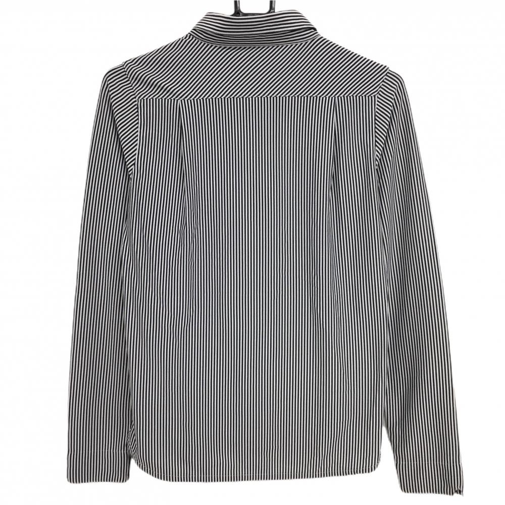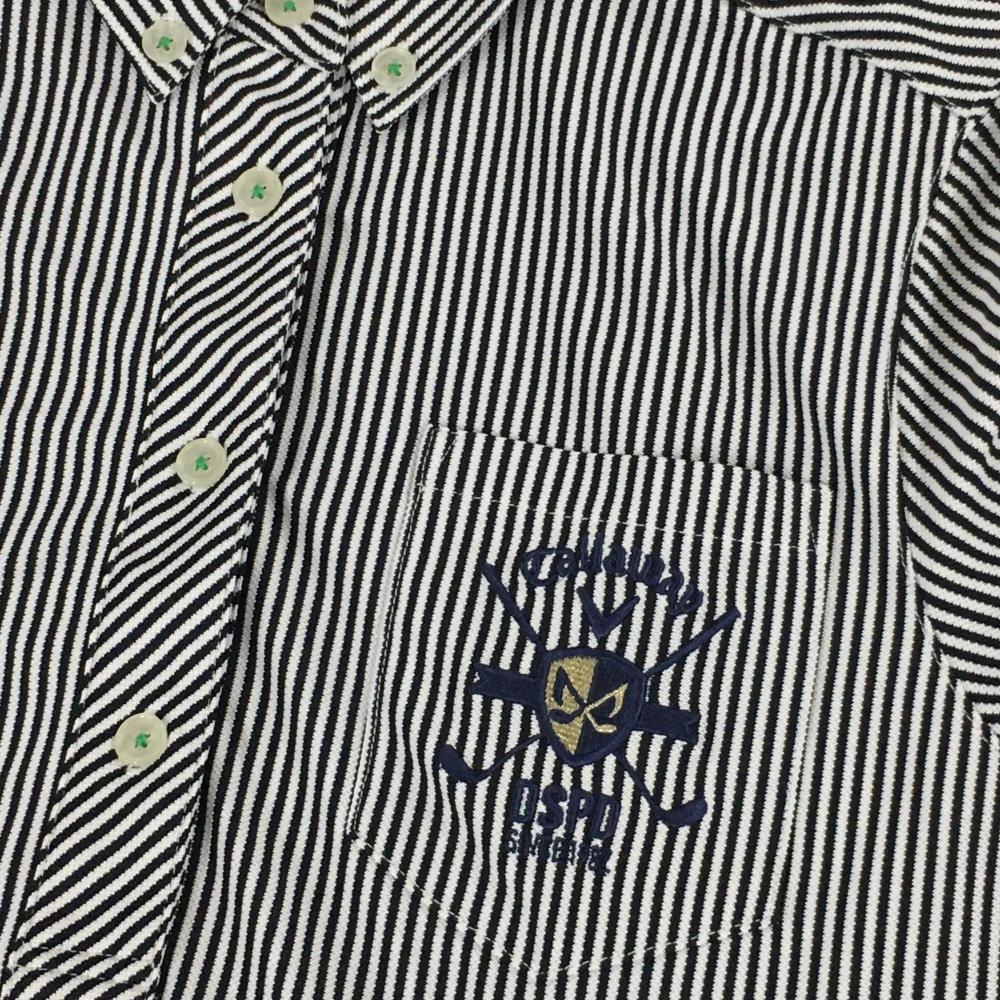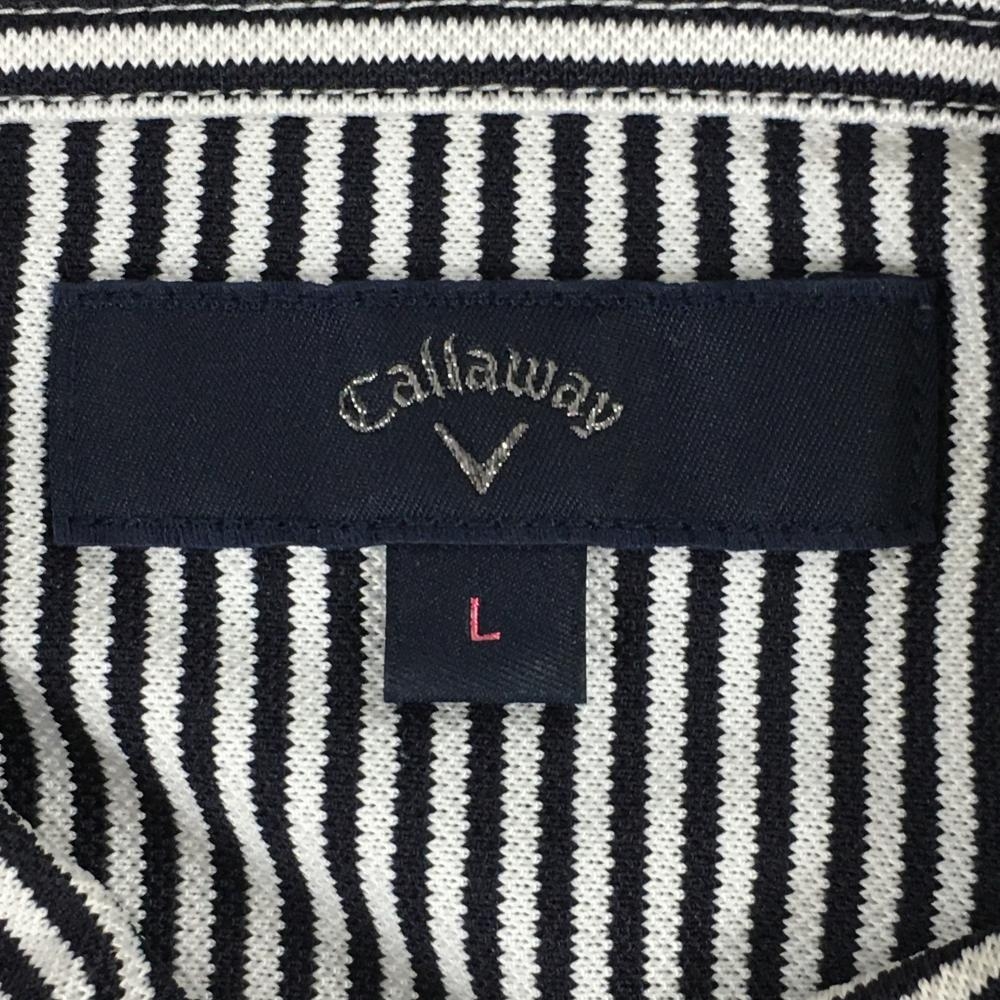 【超美品】キャロウェイ 長袖シャツ 白×黒 ストライプ 胸ポケット ロゴ刺しゅう レディース L ゴルフウェア Callaway