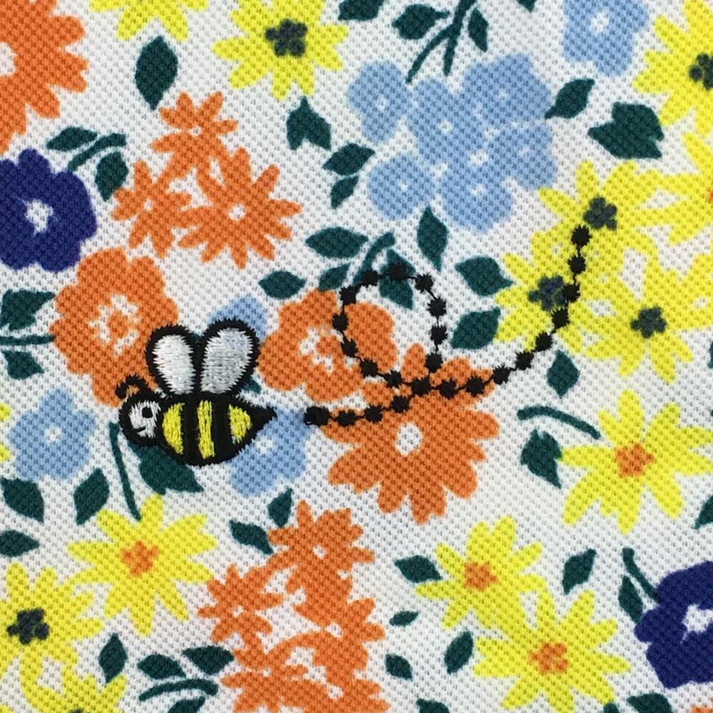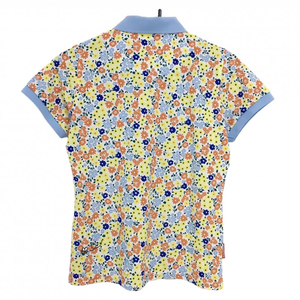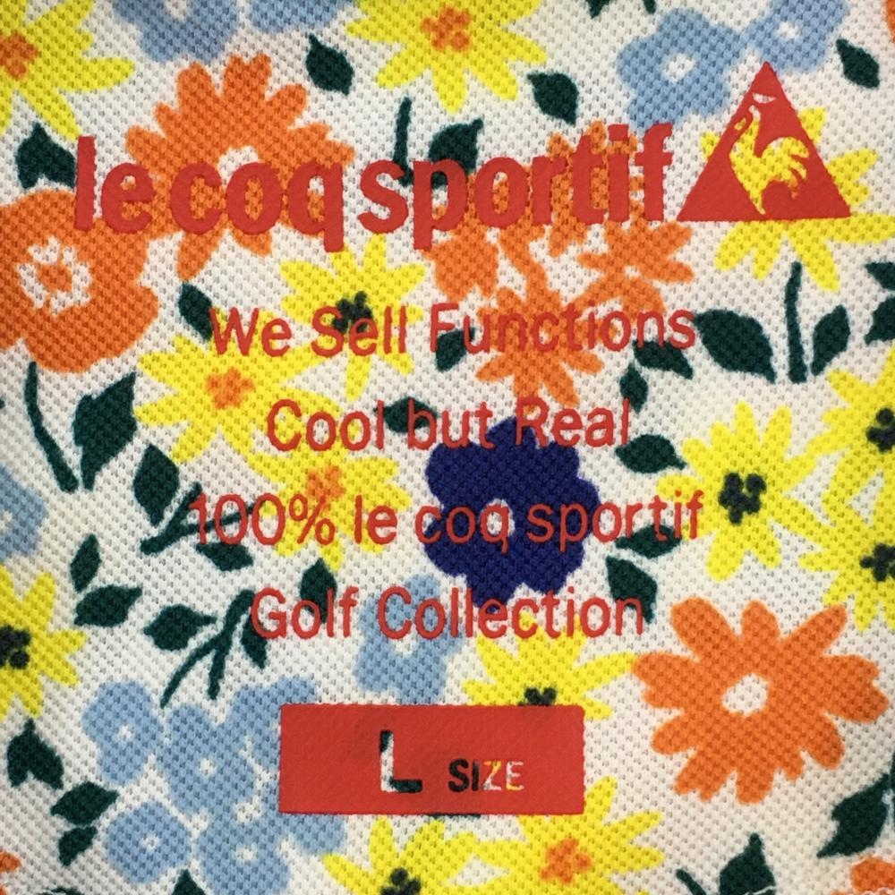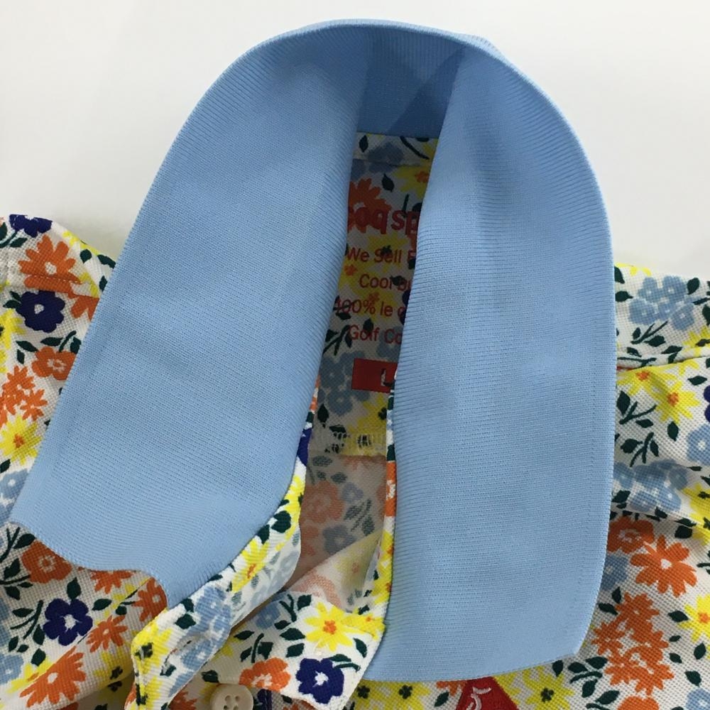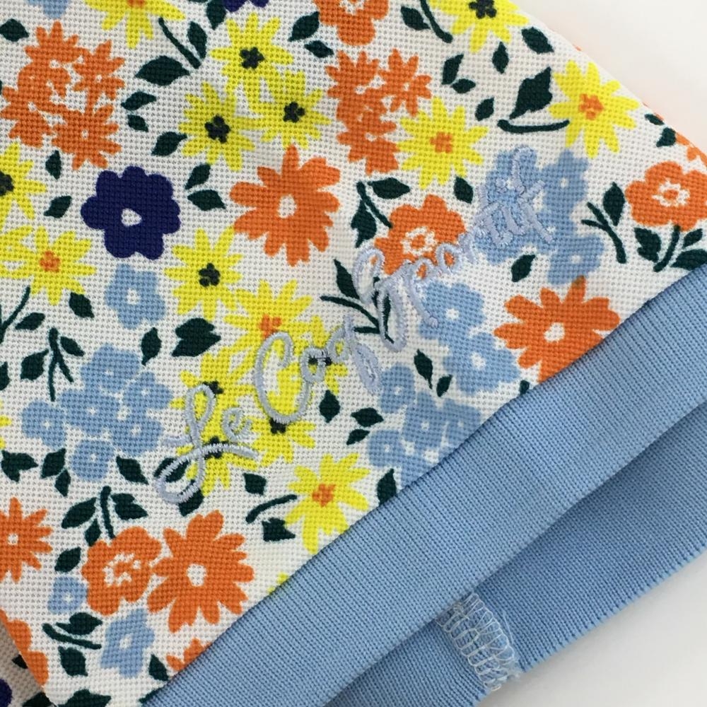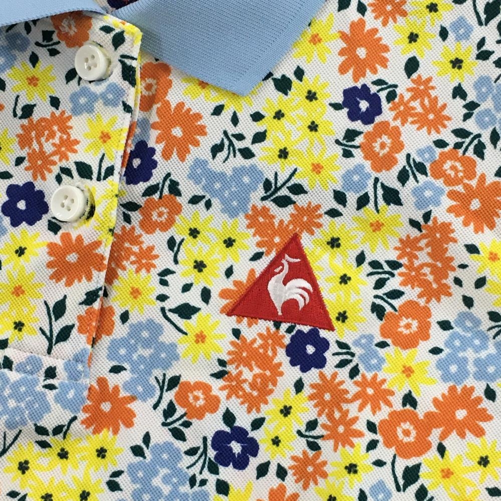 【美品】ルコックゴルフ 半袖ポロシャツ ライトブルー×マルチカラー 花柄 レディース L ゴルフウェア le coq sportif