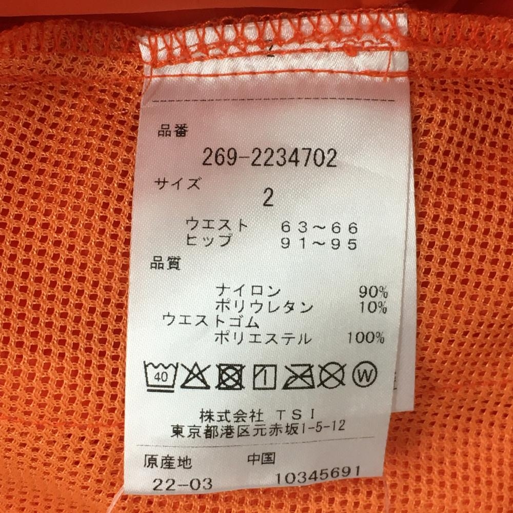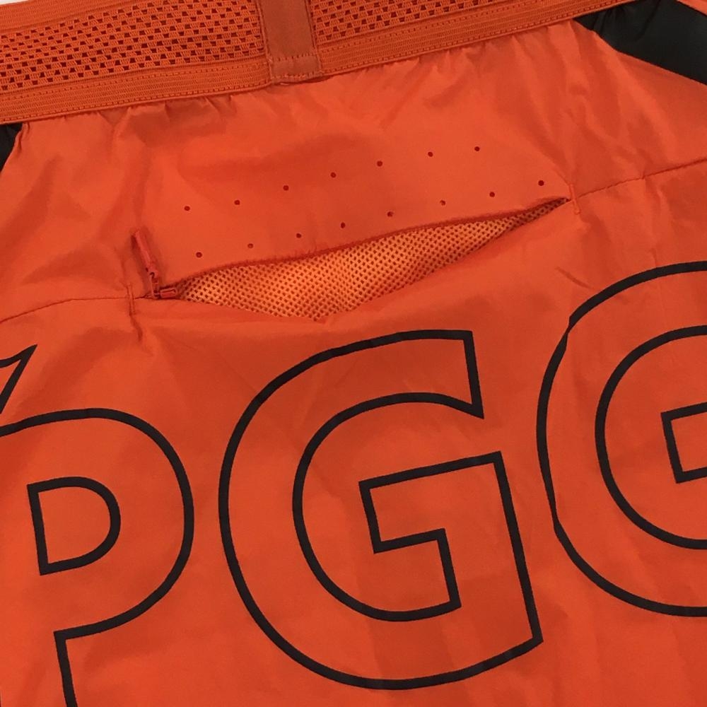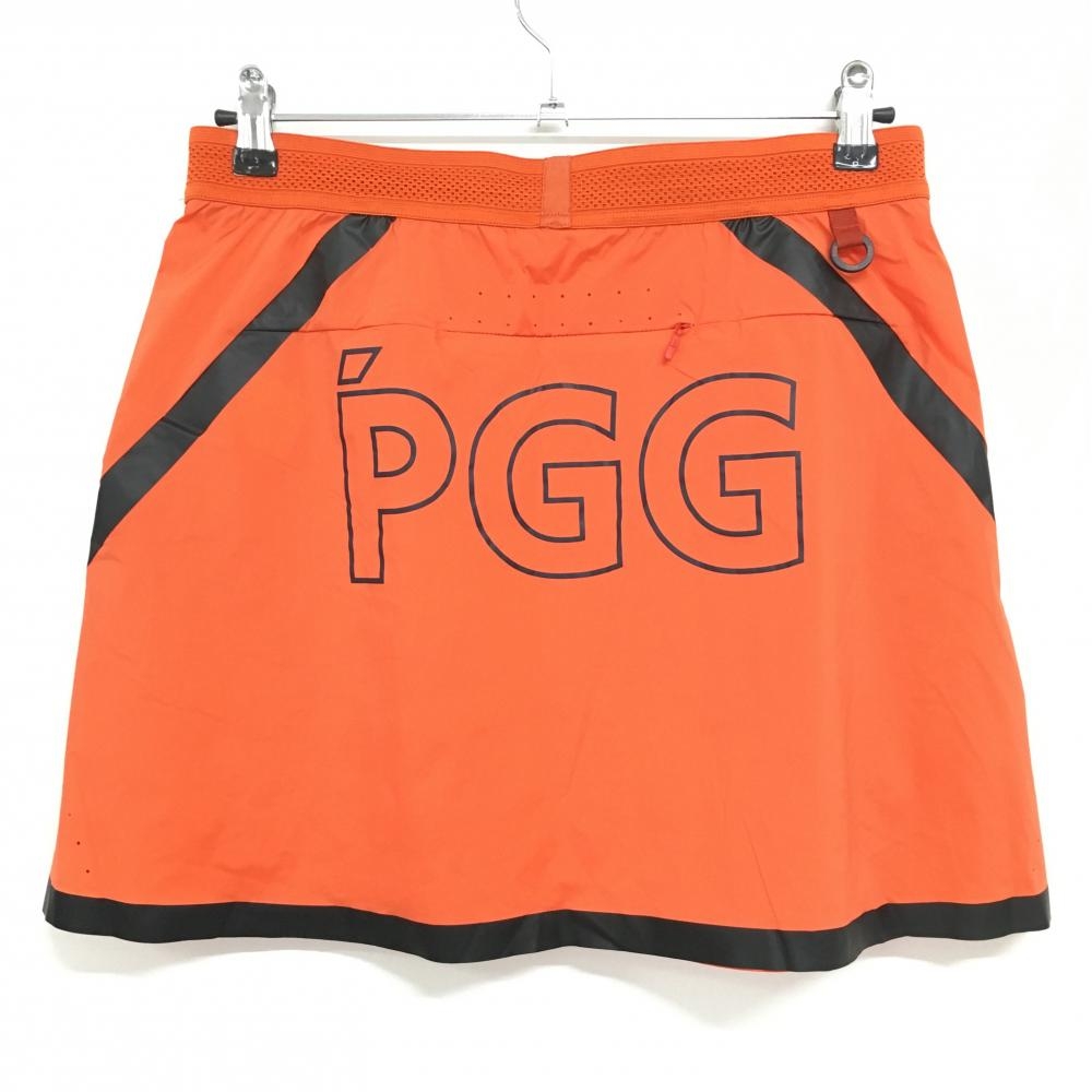 【美品】PGGパーリーゲイツ ナイロンスカート オレンジ×黒 ビッグロゴ ウエストゴム レディース 2(L) ゴルフウェア PEARLY GATES