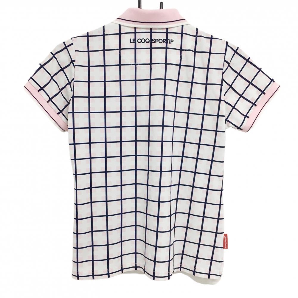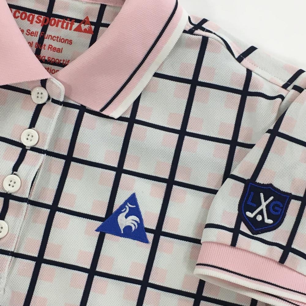 【美品】ルコックゴルフ 半袖ポロシャツ ピンク×ネイビー×白 格子 レディース L ゴルフウェア le coq sportif