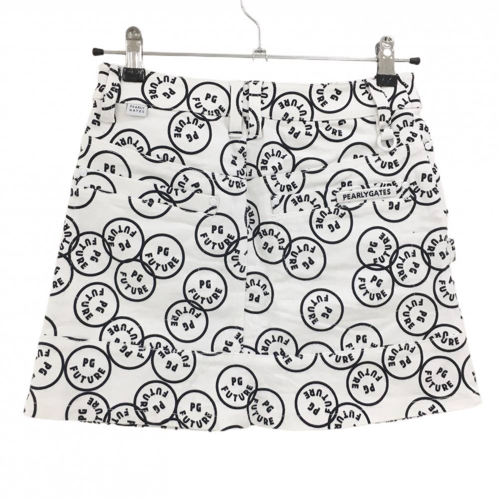 【美品】パーリーゲイツ スカート 白×ダークネイビー PGFUTUREニコちゃん総柄 レディース 00(XS) ゴルフウェア PEARLY GATES