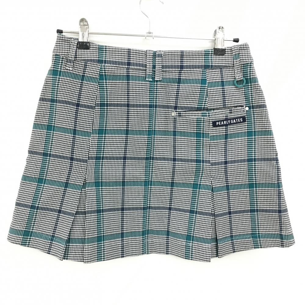 【超美品】パーリーゲイツ スカート 白×黒×グリーン 千鳥格子 チェック ボックスプリーツ レディース 1(M) ゴルフウェア PEARLY GATES