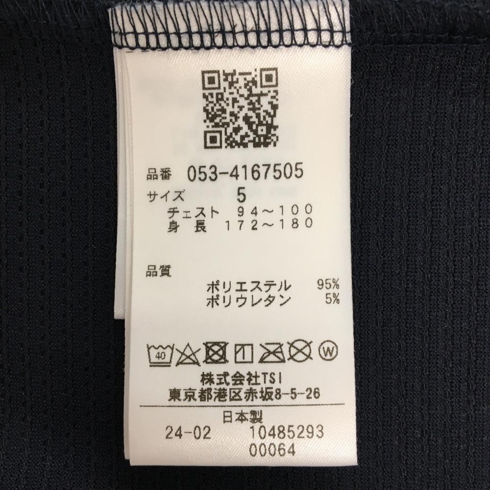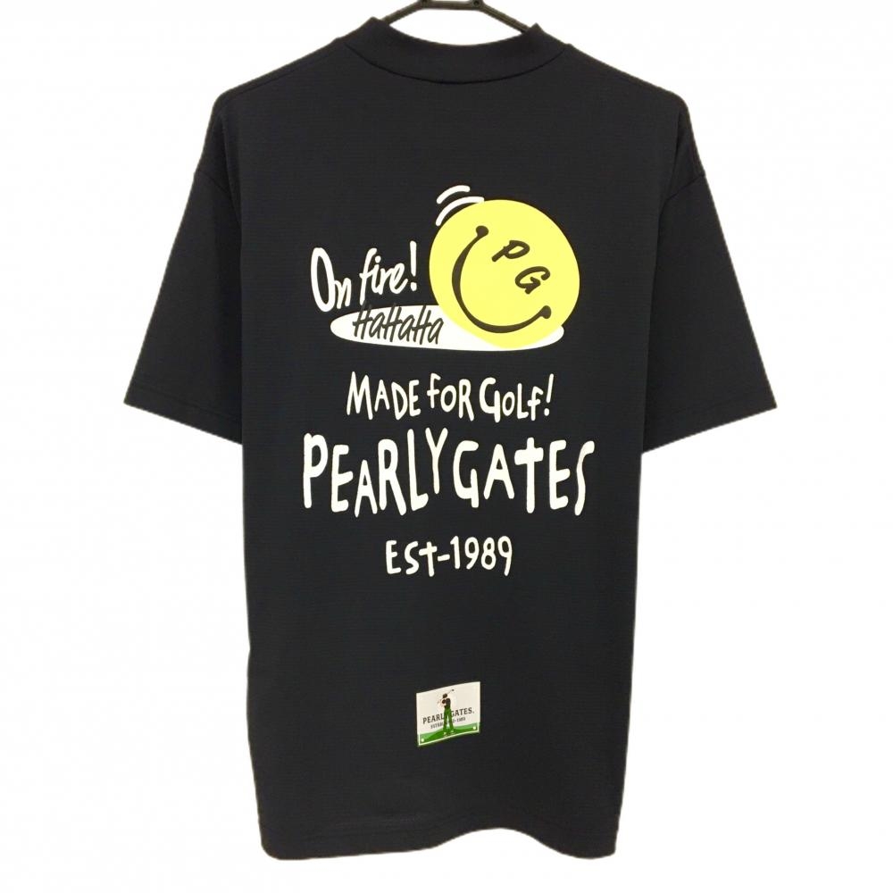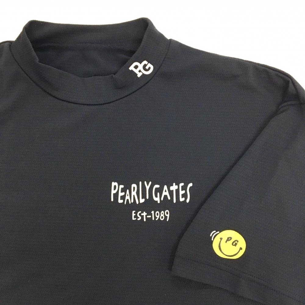 【超美品】パーリーゲイツ 半袖ハイネックシャツ ネイビー×白 背面ロゴ ニコちゃん メンズ 5(L) ゴルフウェア 2024年モデル PEARLY GATES