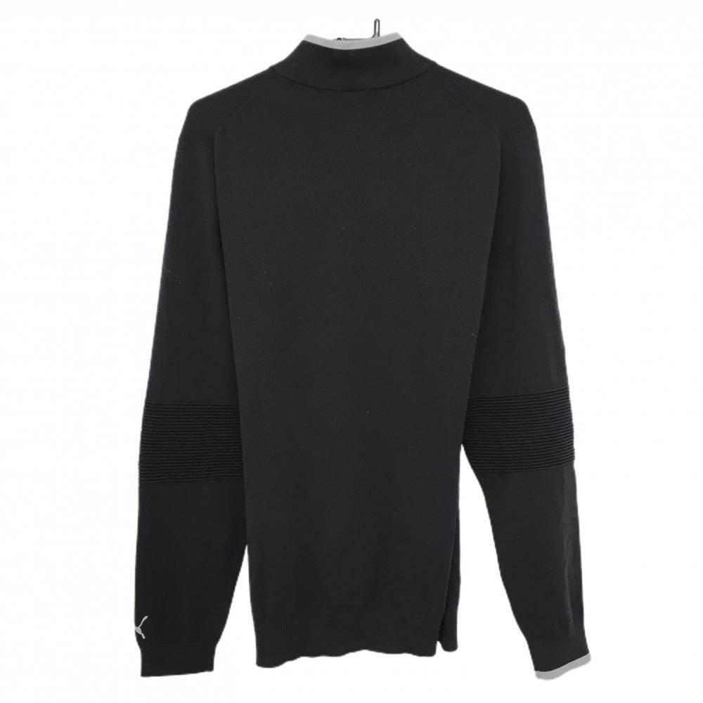 【美品】プーマ ハイネックセーター 黒×グレー ハーフジップ 袖口ロゴ ニット メンズ XL ゴルフウェア PUMA
