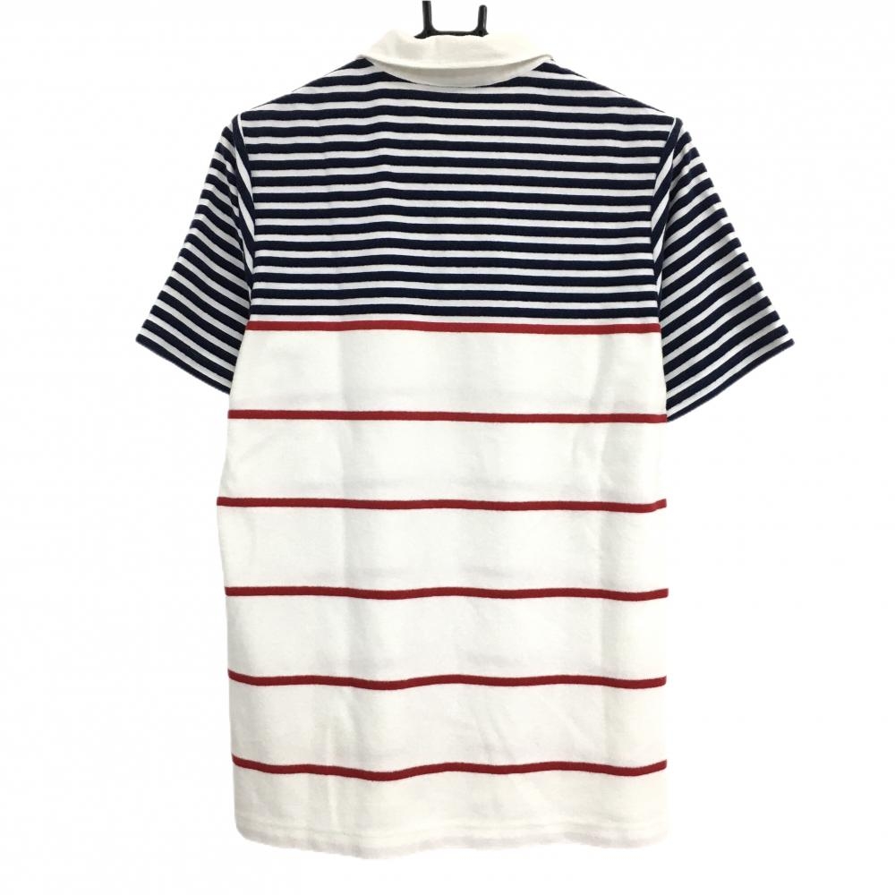 ビームスゴルフ 半袖ポロシャツ 白×ネイビー×レッド ボーダー パイル地 メンズ M ゴルフウェア BEAMS GOLF