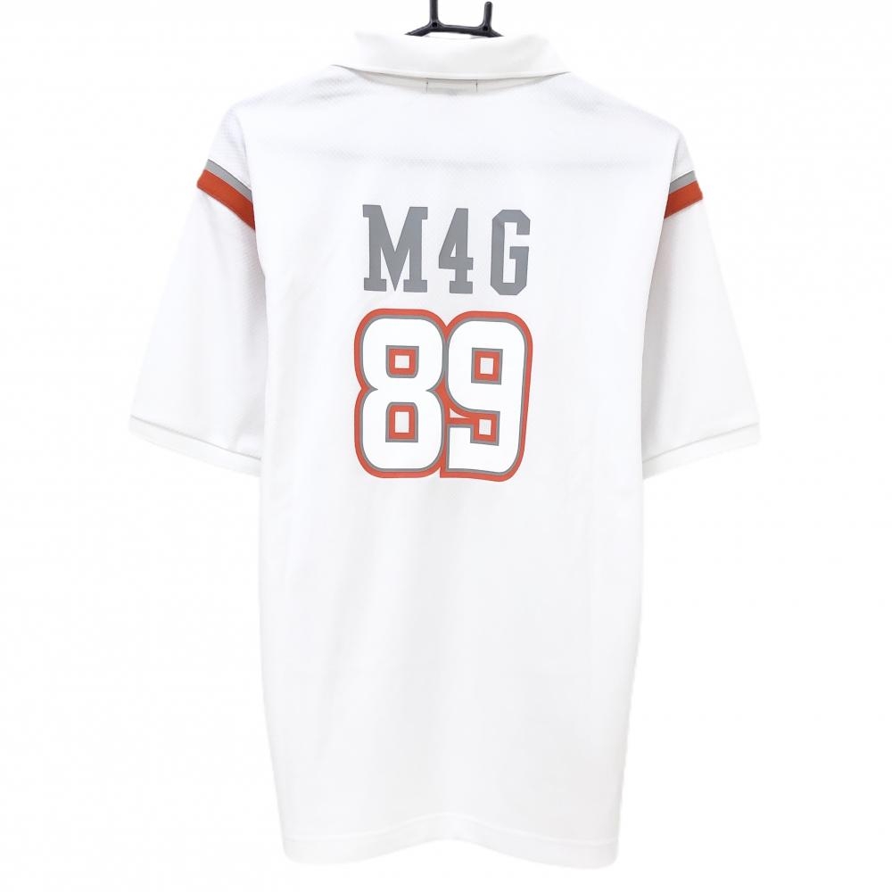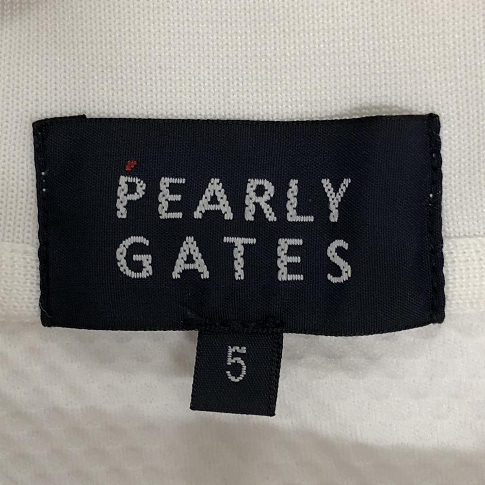 【超美品】パーリーゲイツ 半袖ポロシャツ 白×オレンジ サイドライン 背面プリント メンズ 5(L) ゴルフウェア 2024年モデル PEARLY GATES