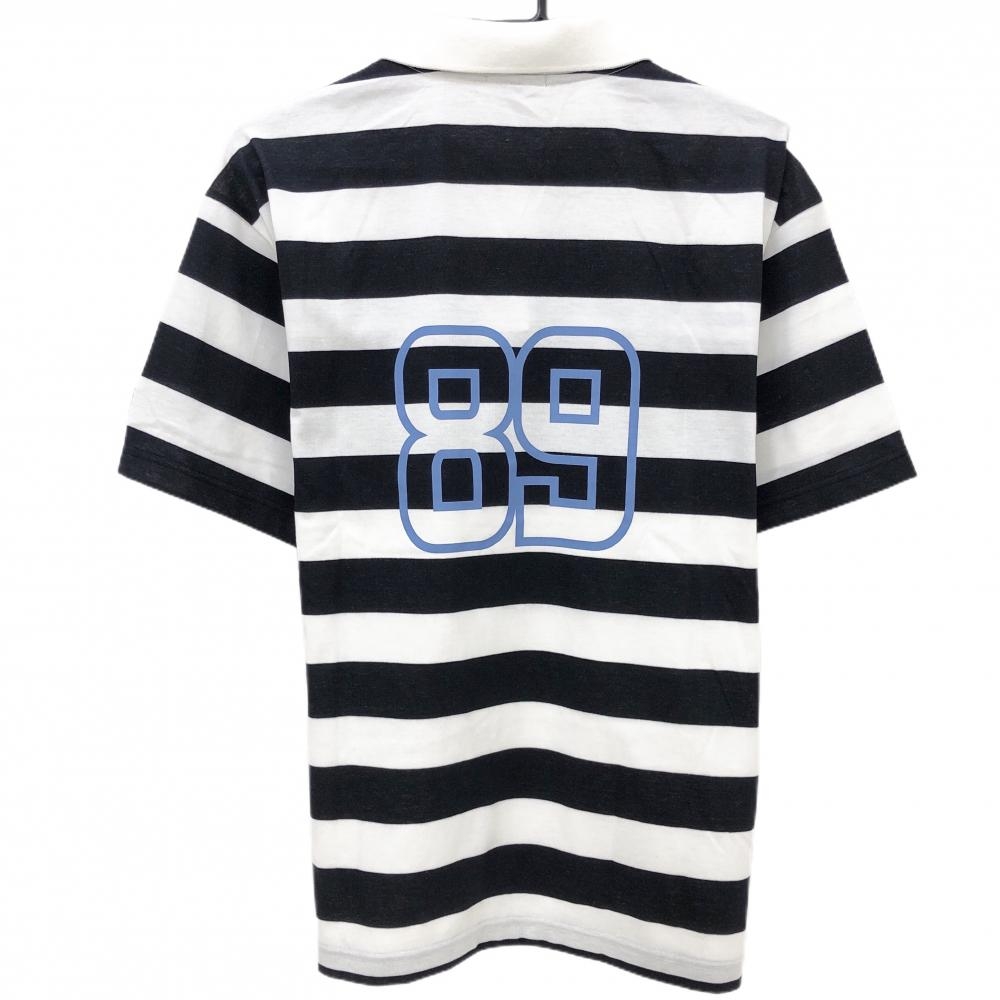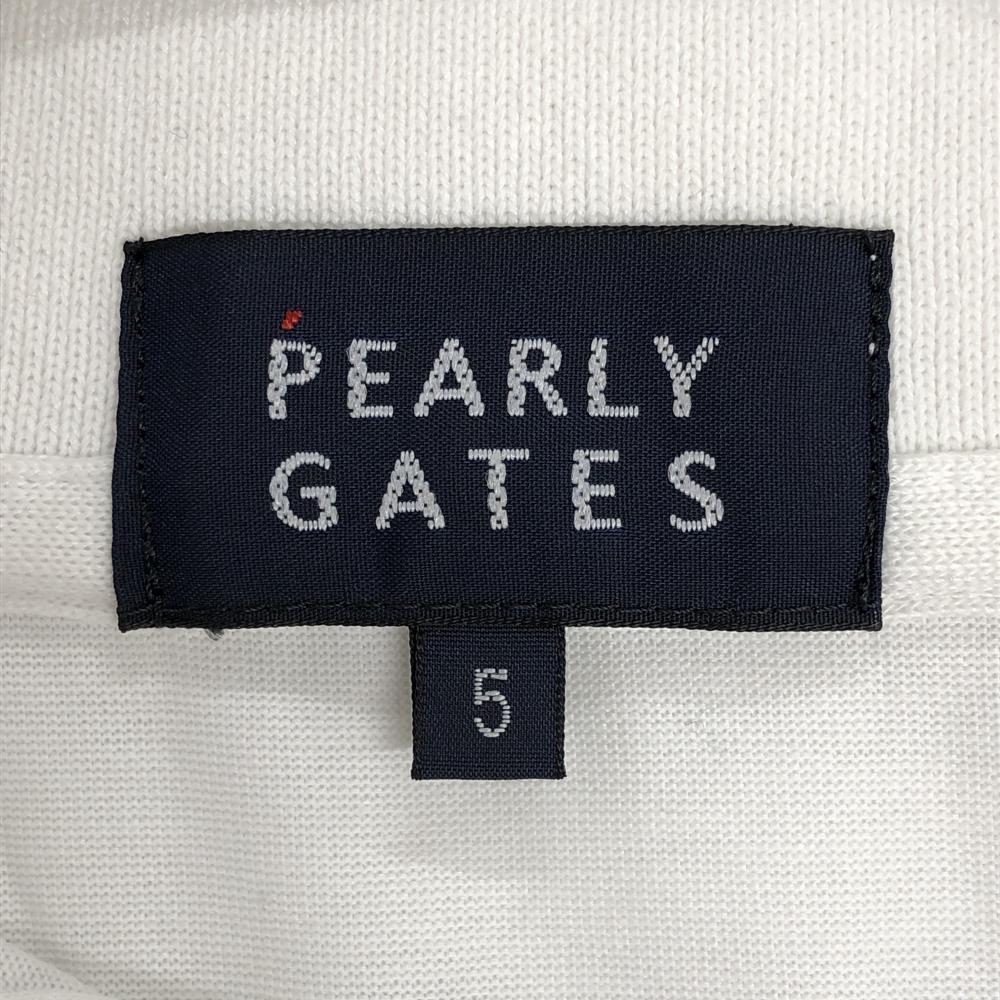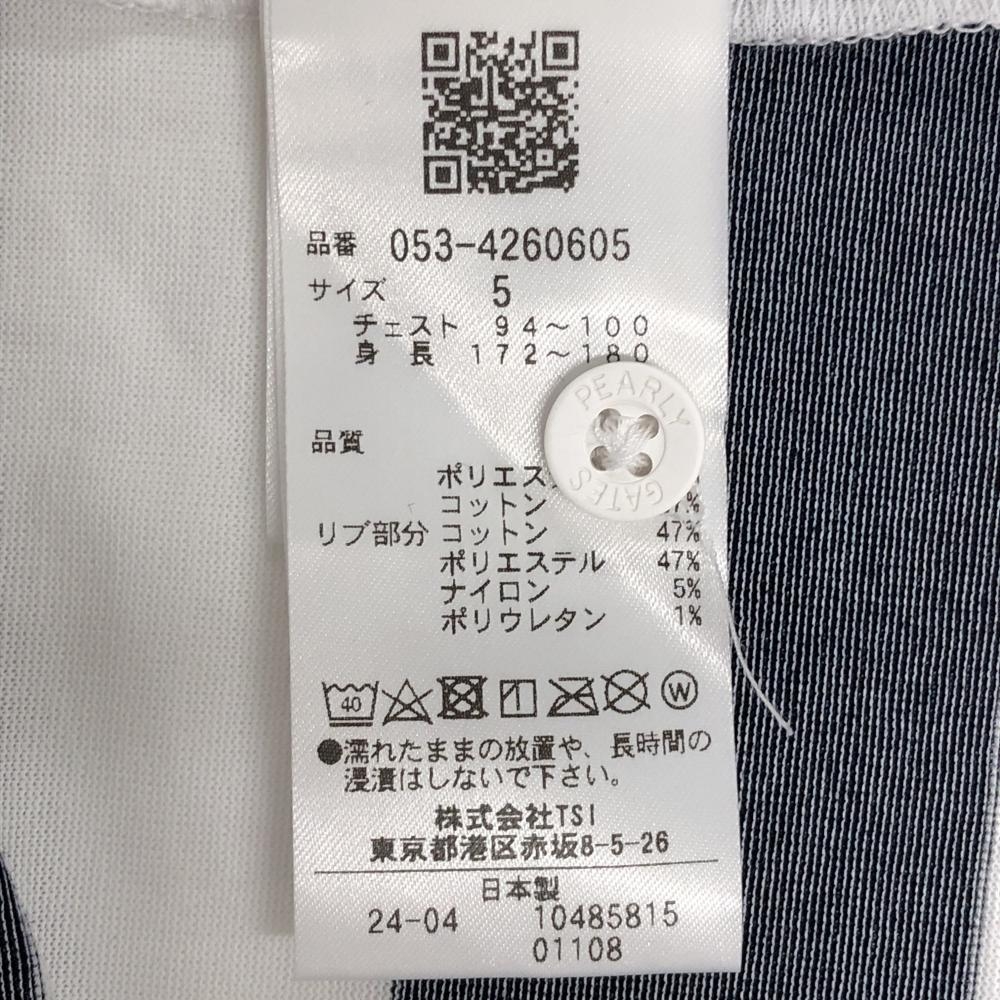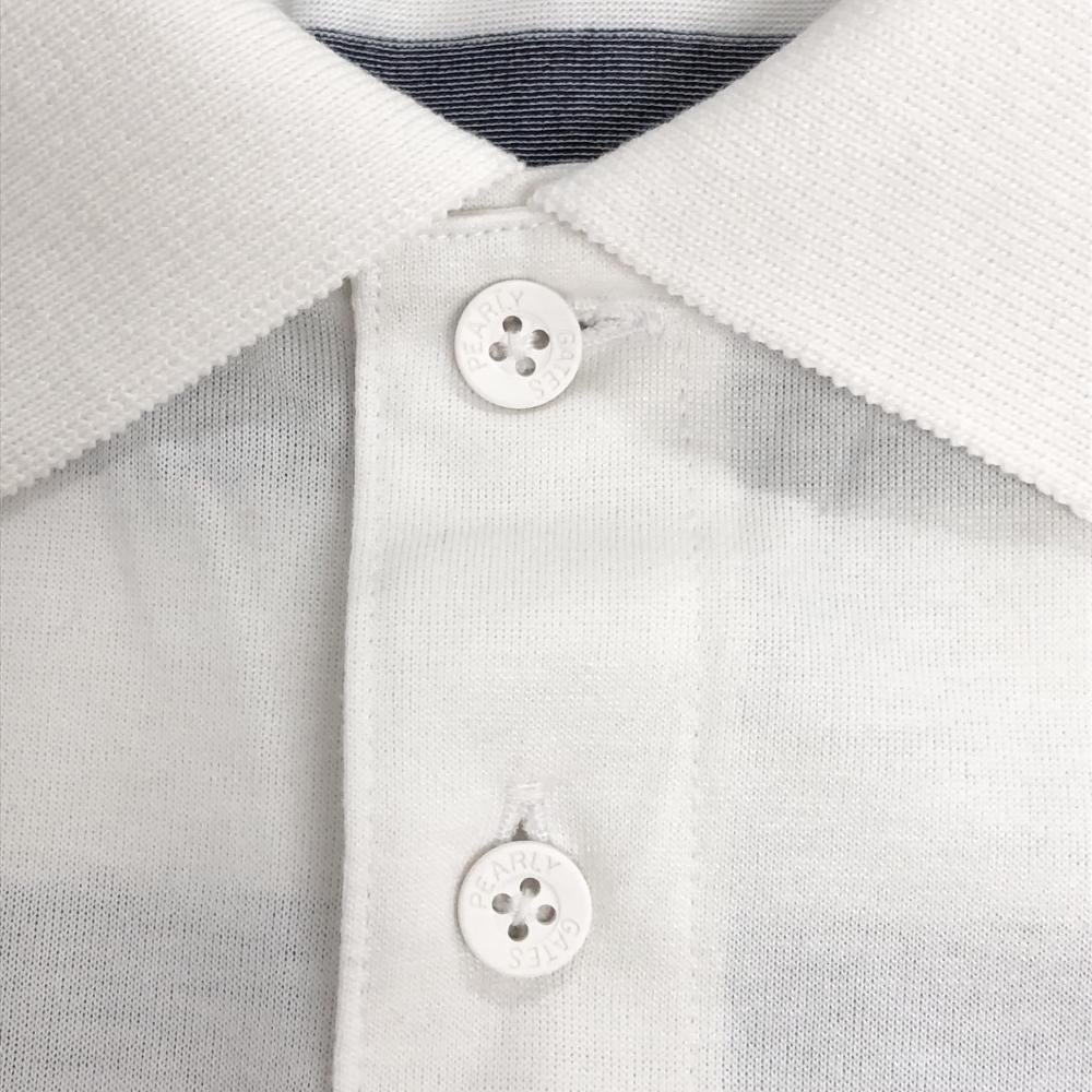 【超美品】パーリーゲイツ 半袖ポロシャツ 白×ネイビー 背面ボーダー フロントロゴ メンズ 5(L) ゴルフウェア 2024年モデル PEARLY GATES