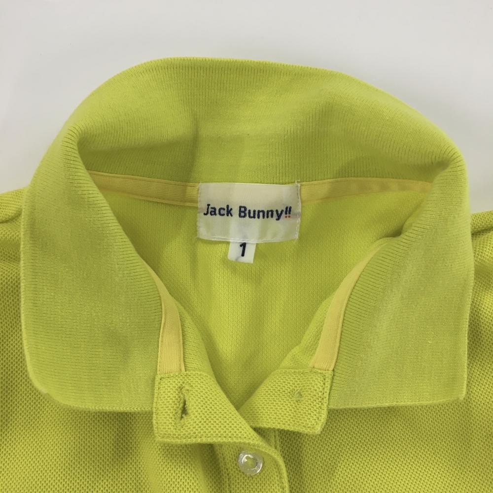 ジャックバニー 半袖ポロシャツ ライムイエロー×白 フロントロゴプリント レディース 1(M) ゴルフウェア Jack Bunny