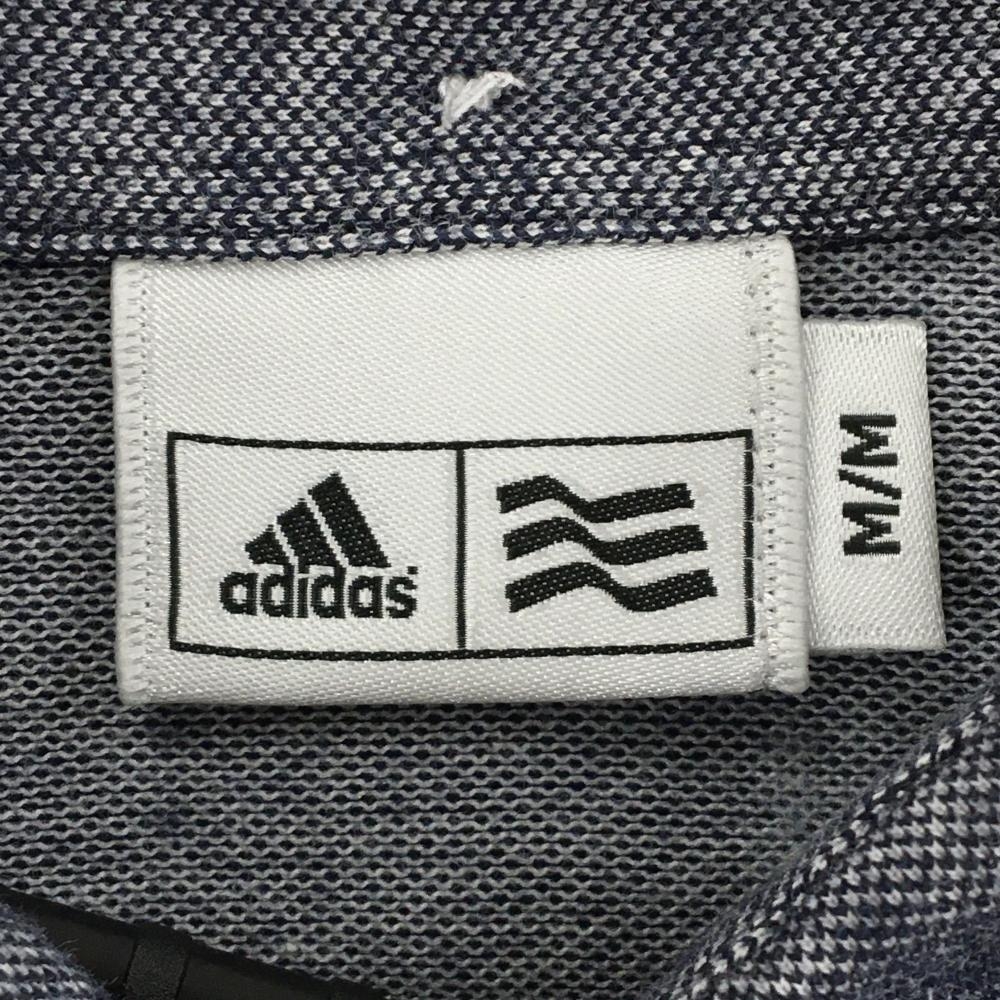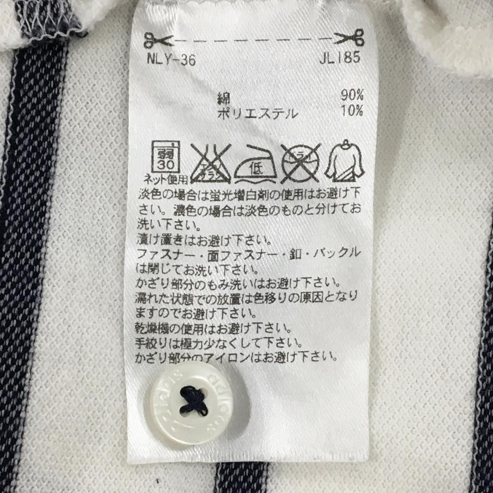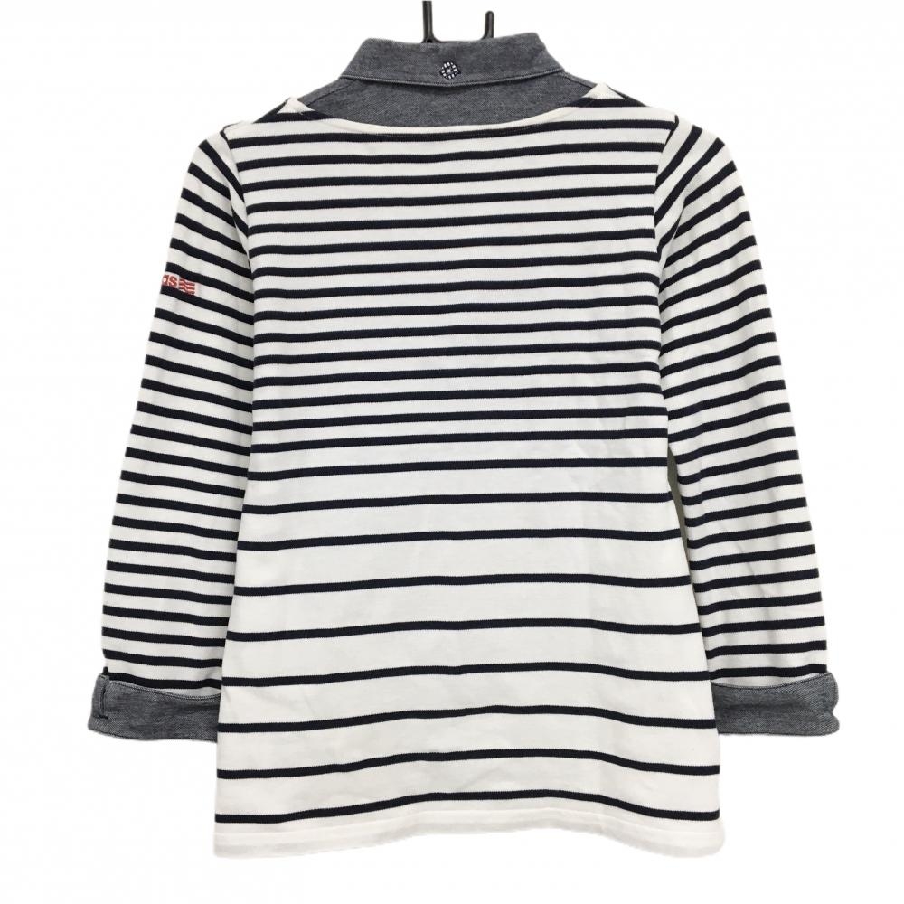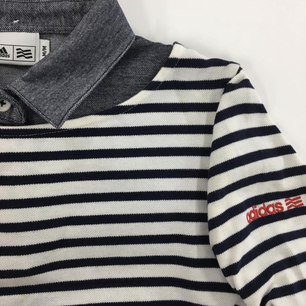 【美品】アディダス 襟付き長袖シャツ 白×ネイビー ボーダー 重ね着風 レディース M/M ゴルフウェア adidas