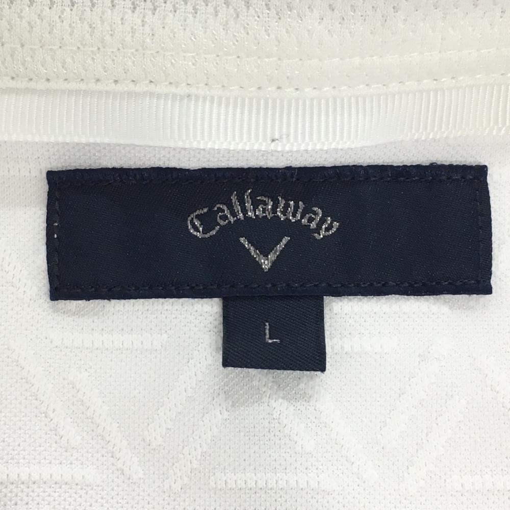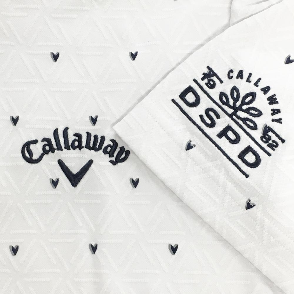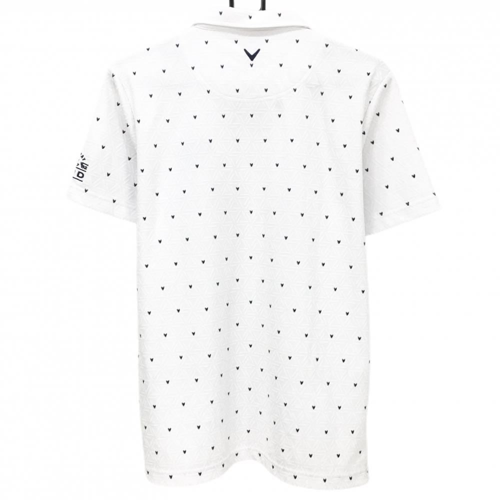 【超美品】キャロウェイ 半袖ポロシャツ 白×ネイビー ハート柄 織生地 ボタンダウン メンズ L ゴルフウェア Callaway