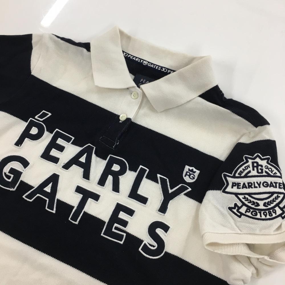 パーリーゲイツ 半袖ポロシャツ ネイビー×白 ボーダー 30周年 レディース 1(M) ゴルフウェア 非売品 PEARLY GATES