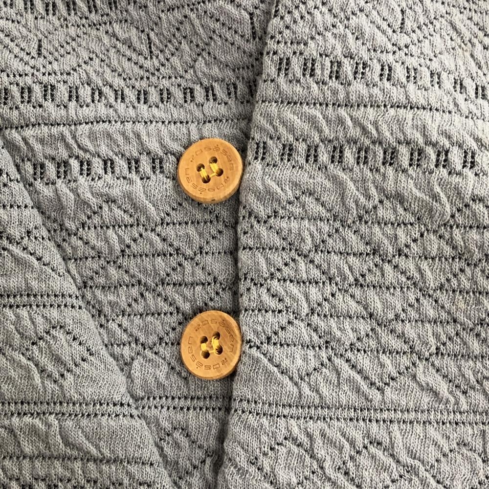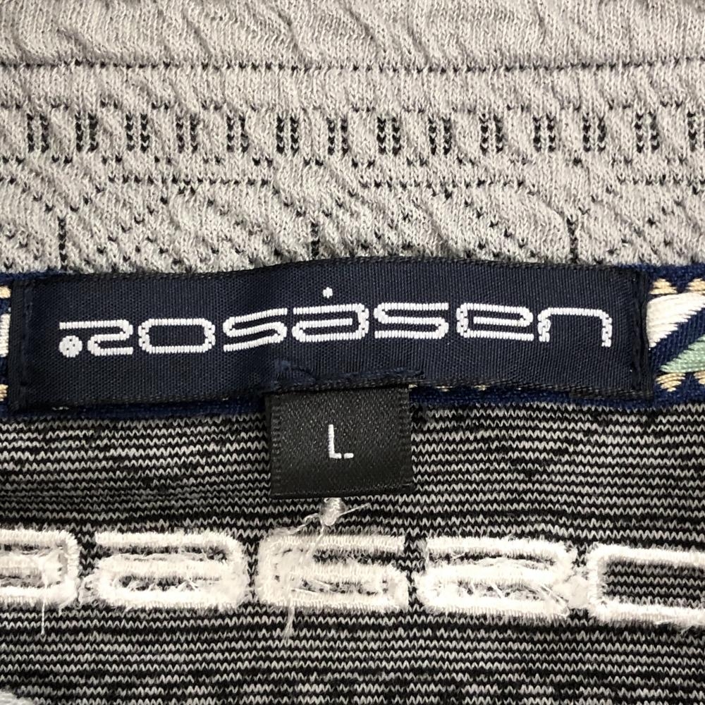 【美品】ロサーセン 襟付き長袖シャツ グレー 総柄 凹凸生地 レディース L ゴルフウェア Rosasen