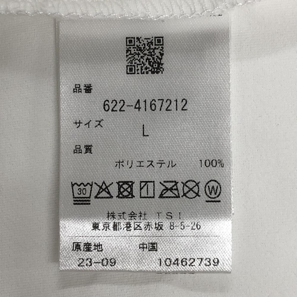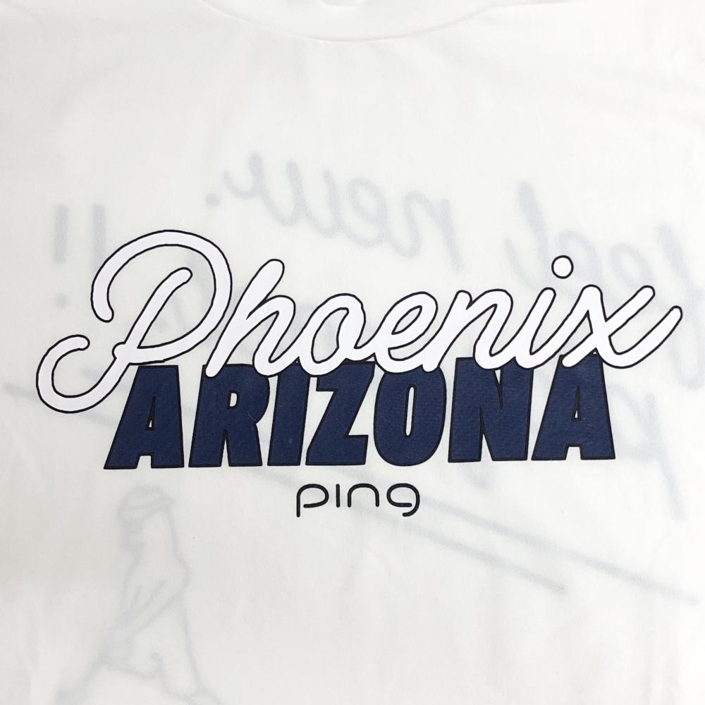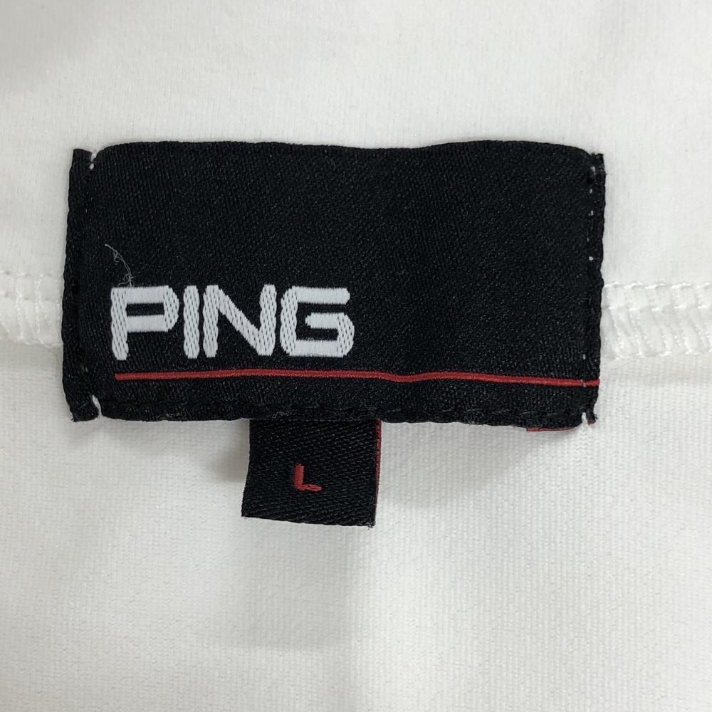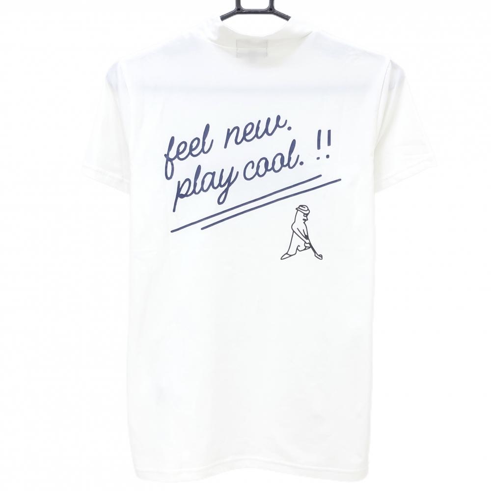 【超美品】ピン 半袖ハイネックシャツ 白×ネイビー Mr.PING バックプリント UVカット レディース L ゴルフウェア 2024年モデル PING