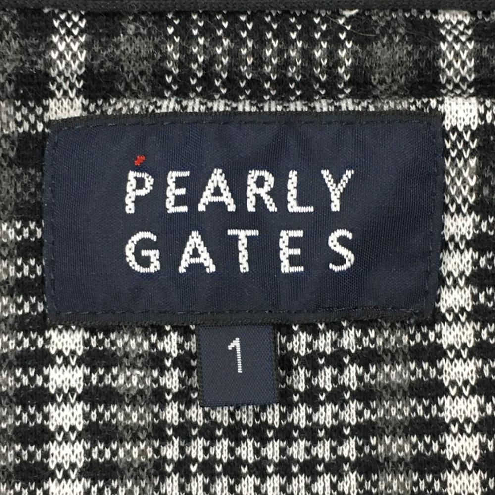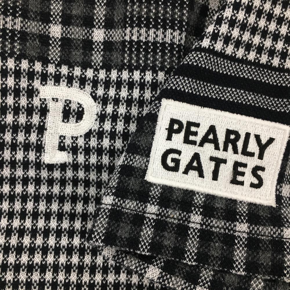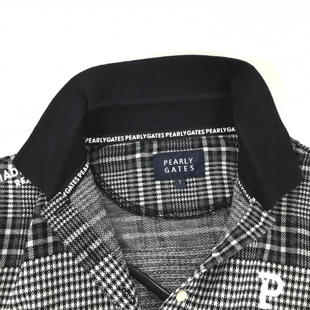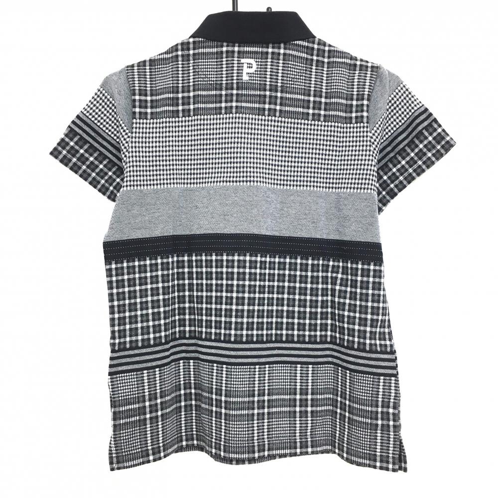 パーリーゲイツ 半袖ポロシャツ 黒×白 チェック切替総柄 ロゴ刺しゅう レディース 1(M) ゴルフウェア 2023年モデル PEARLY GATES