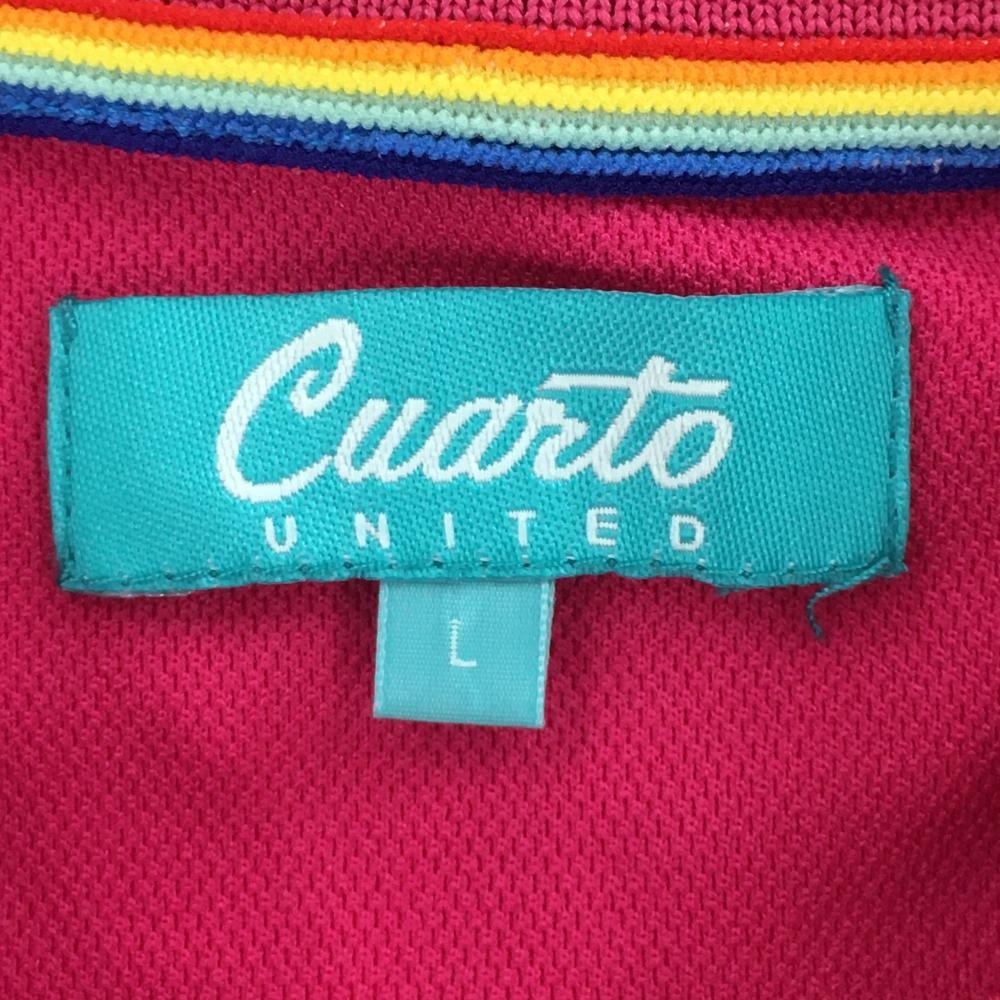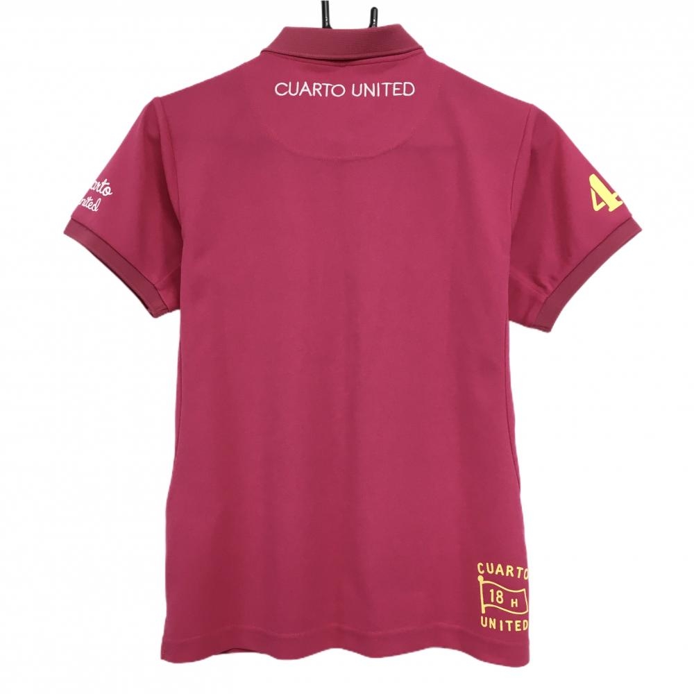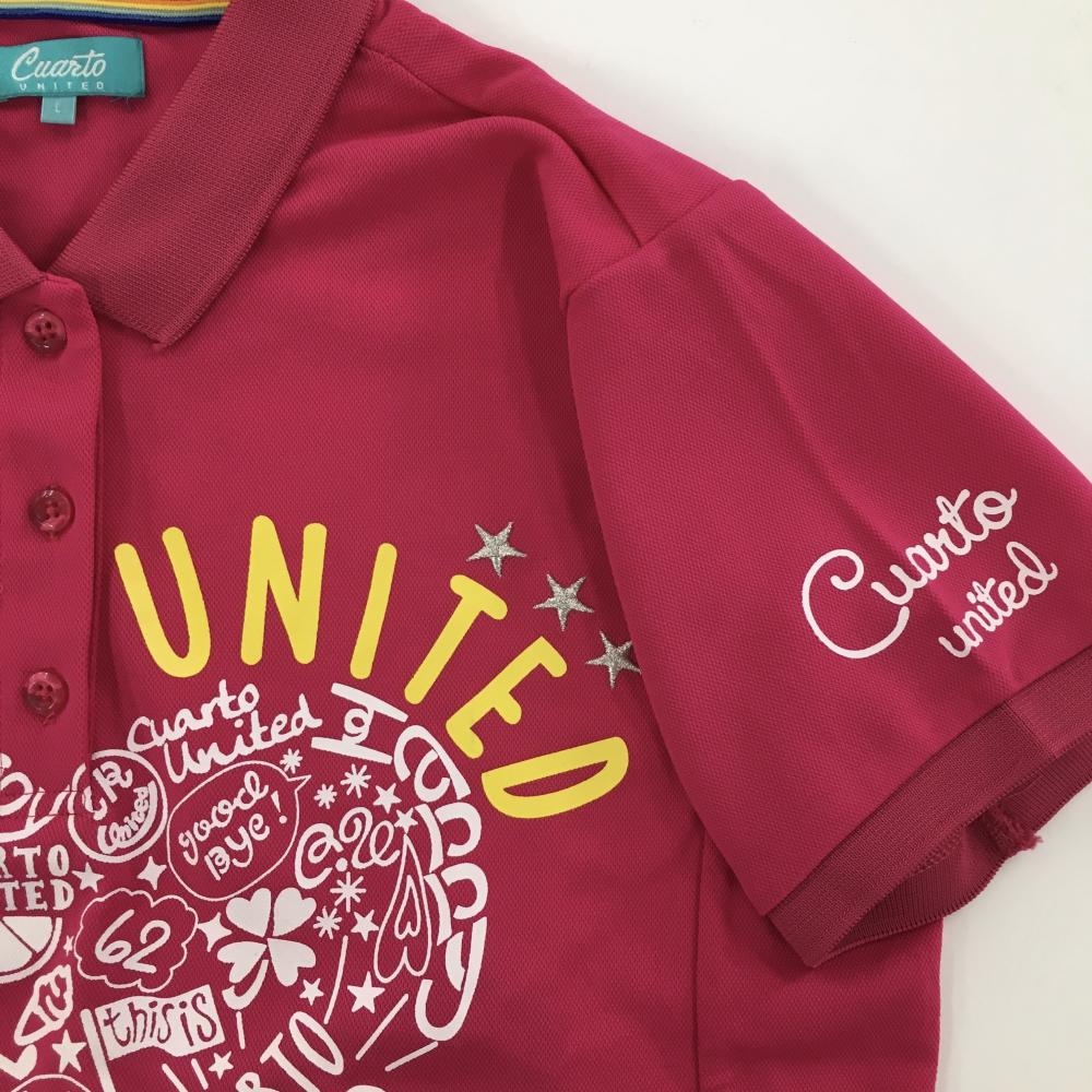【超美品】クアルトユナイテッド 半袖ポロシャツ ピンク×白 フロントハート柄 レディース L ゴルフウェア CUARTO UNITED